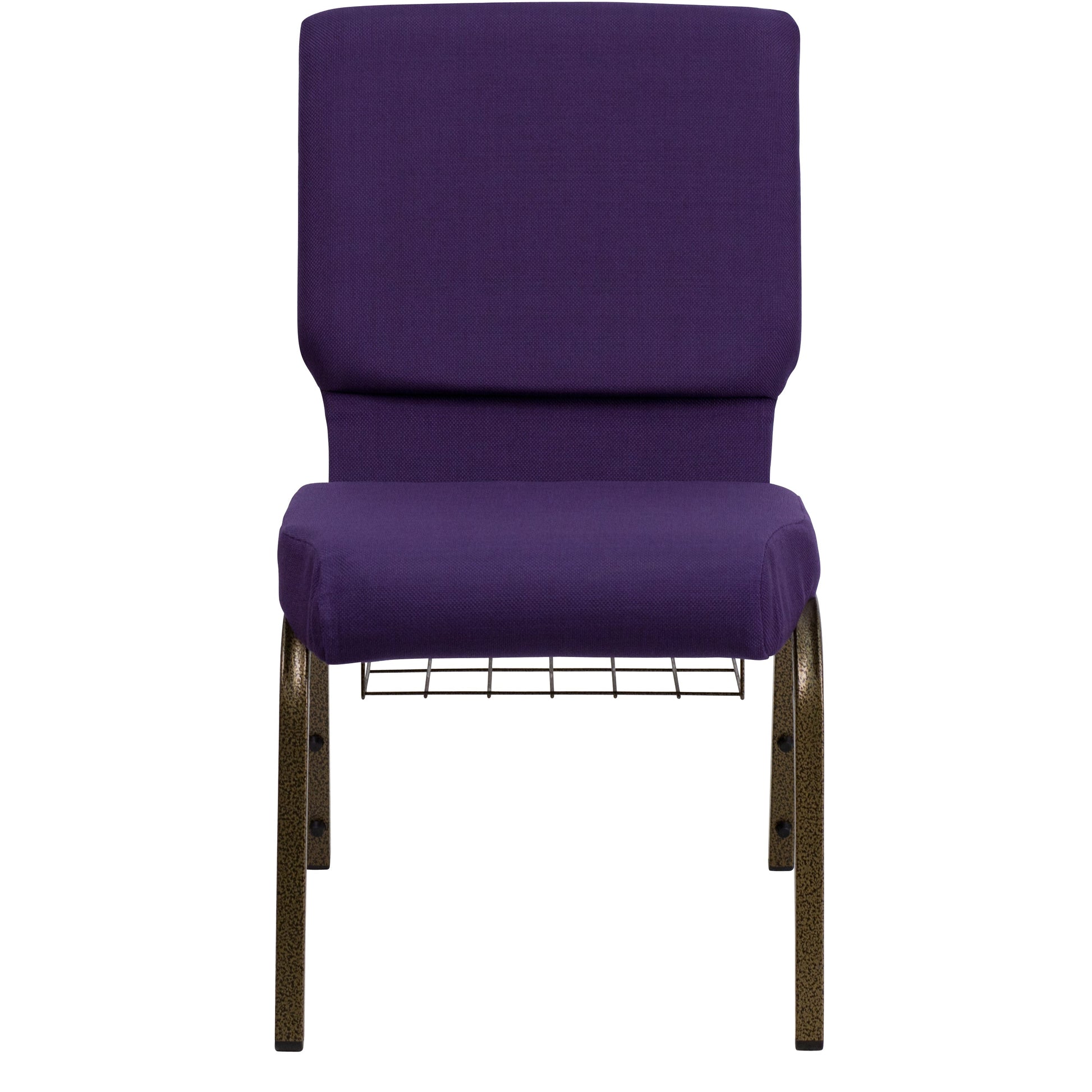 HERCULES Series 18.5''W Church Chair in Royal Purple Fabric with Cup Book Rack - Gold Vein Frame Dimensions: 19.25"W x 25"D x 33.25"H