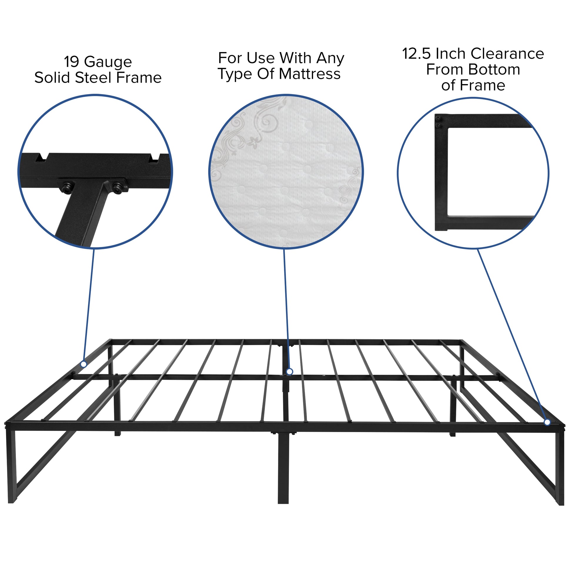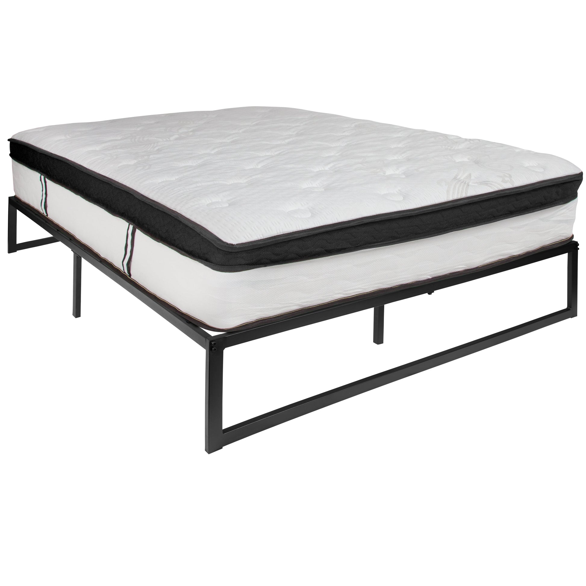 Louis 14 Inch Metal Platform Bed Frame with 12 Inch Memory Foam Pocket Spring Mattress in a Box (No Box Spring Required) - Queen Dimensions: 59.375"W x 79.5"D x 26"H