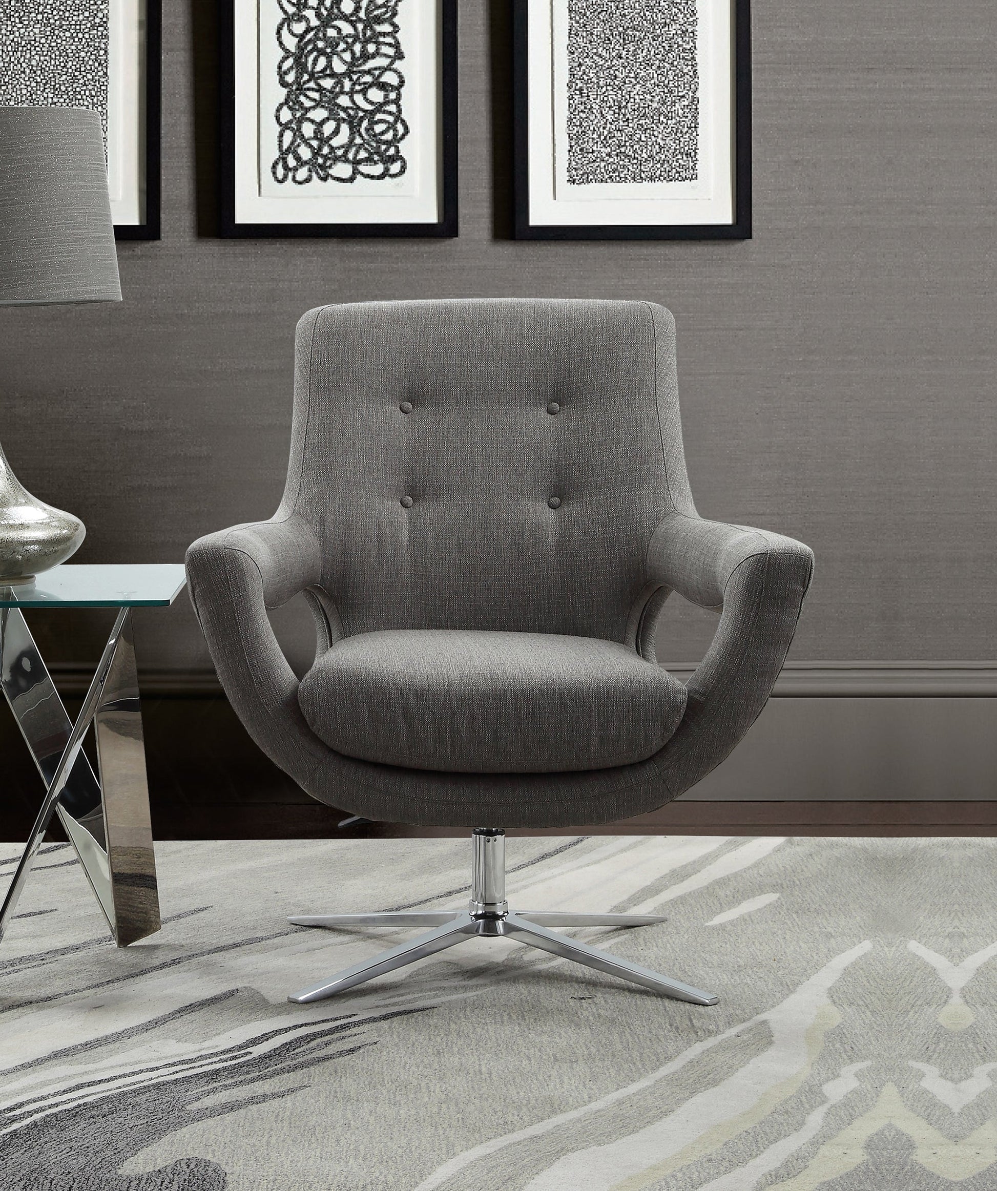 Quinn Contemporary Adjustable Swivel Accent Chair in Polished Chrome Finish with Gray Fabric