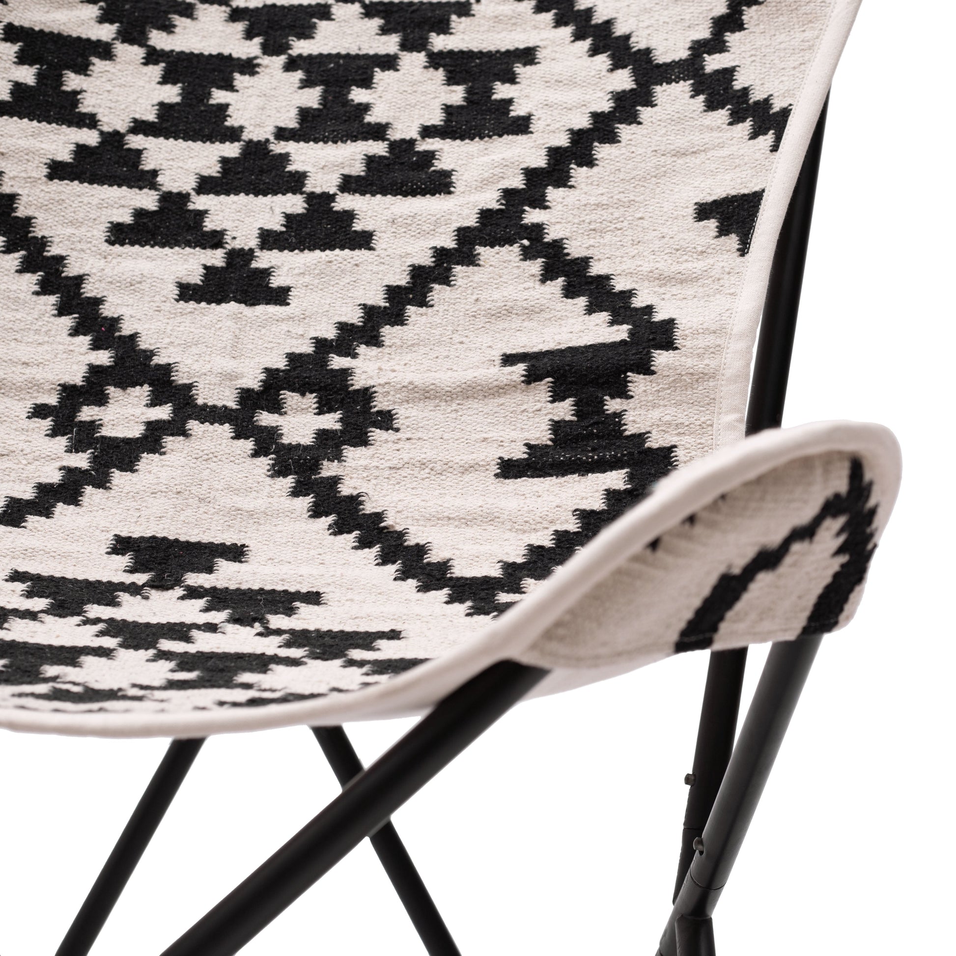 Overall, the Rabat Accent Chair is a stylish and unique seating option that combines modern and boho-inspired design elements. Its comfortable cotton seat, sturdy steel frame, and eye-catching multicolor pattern make it a statement piece that adds charm and personality to any space.