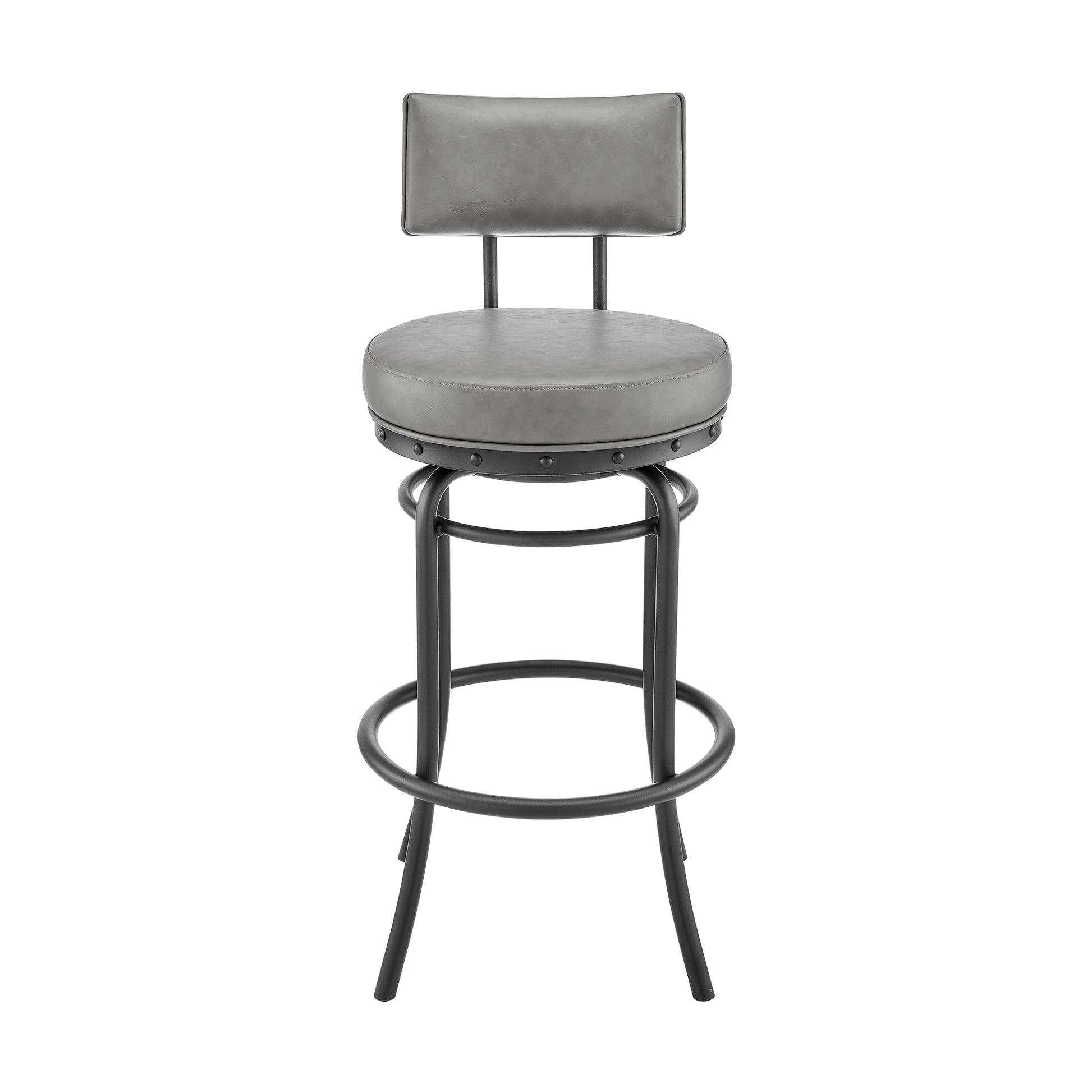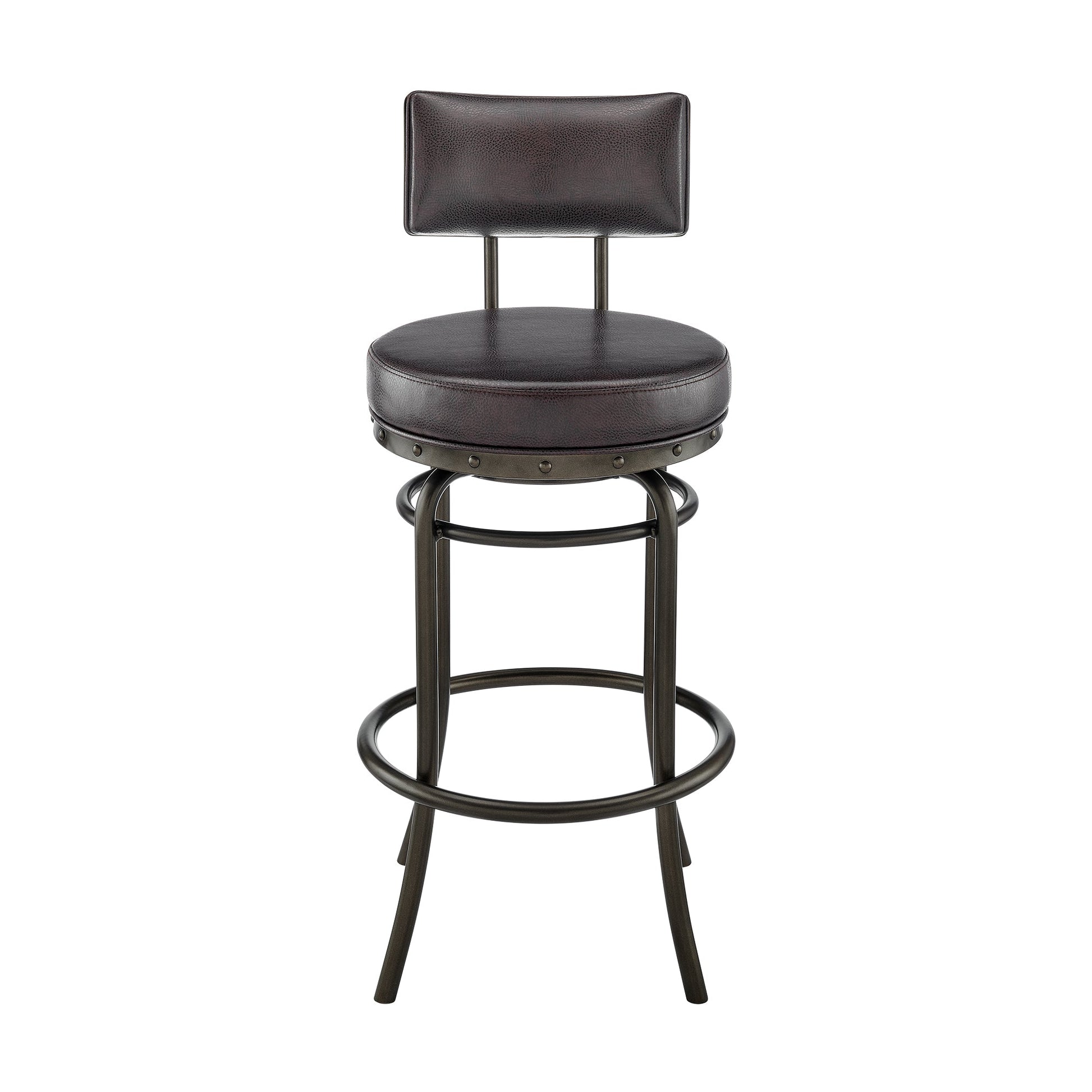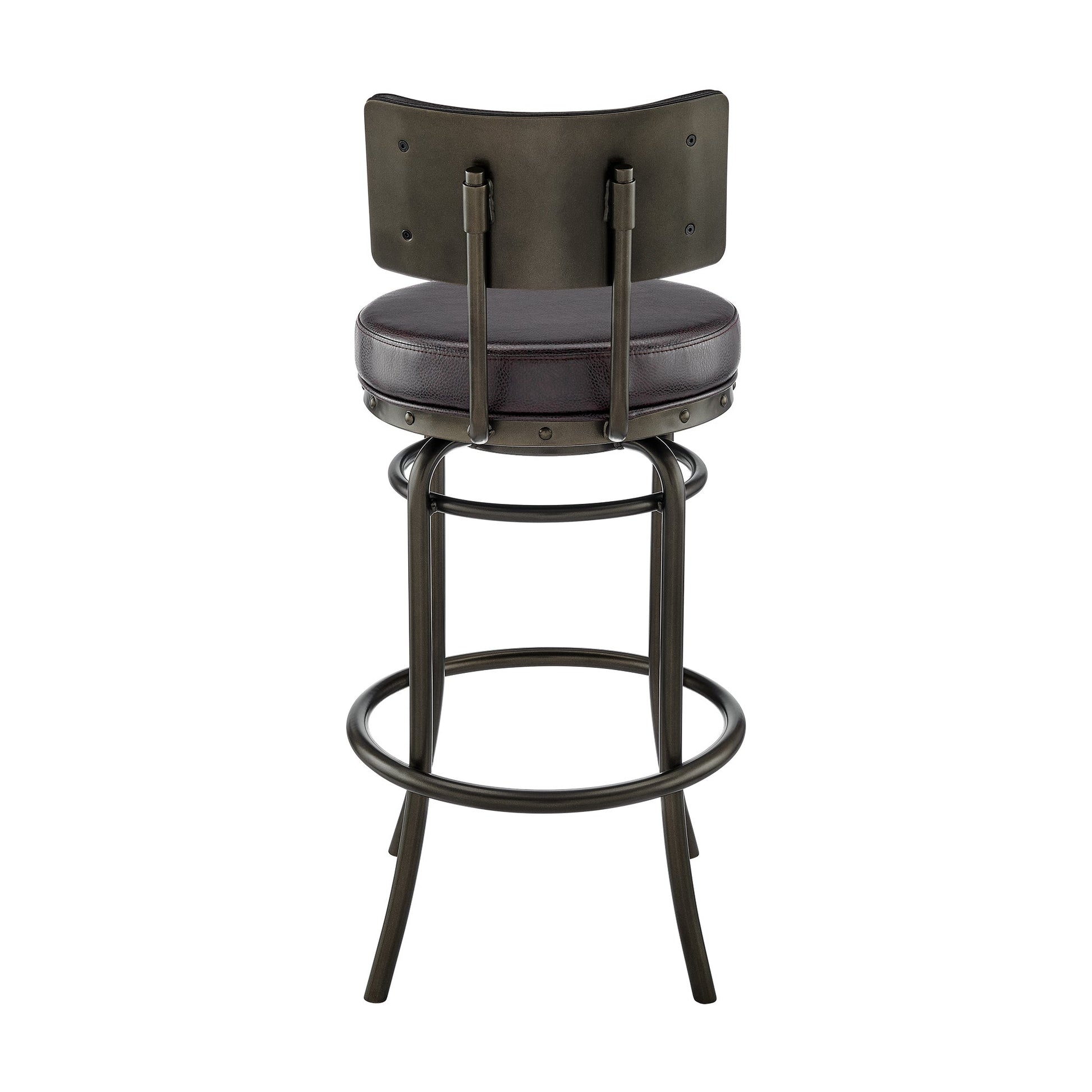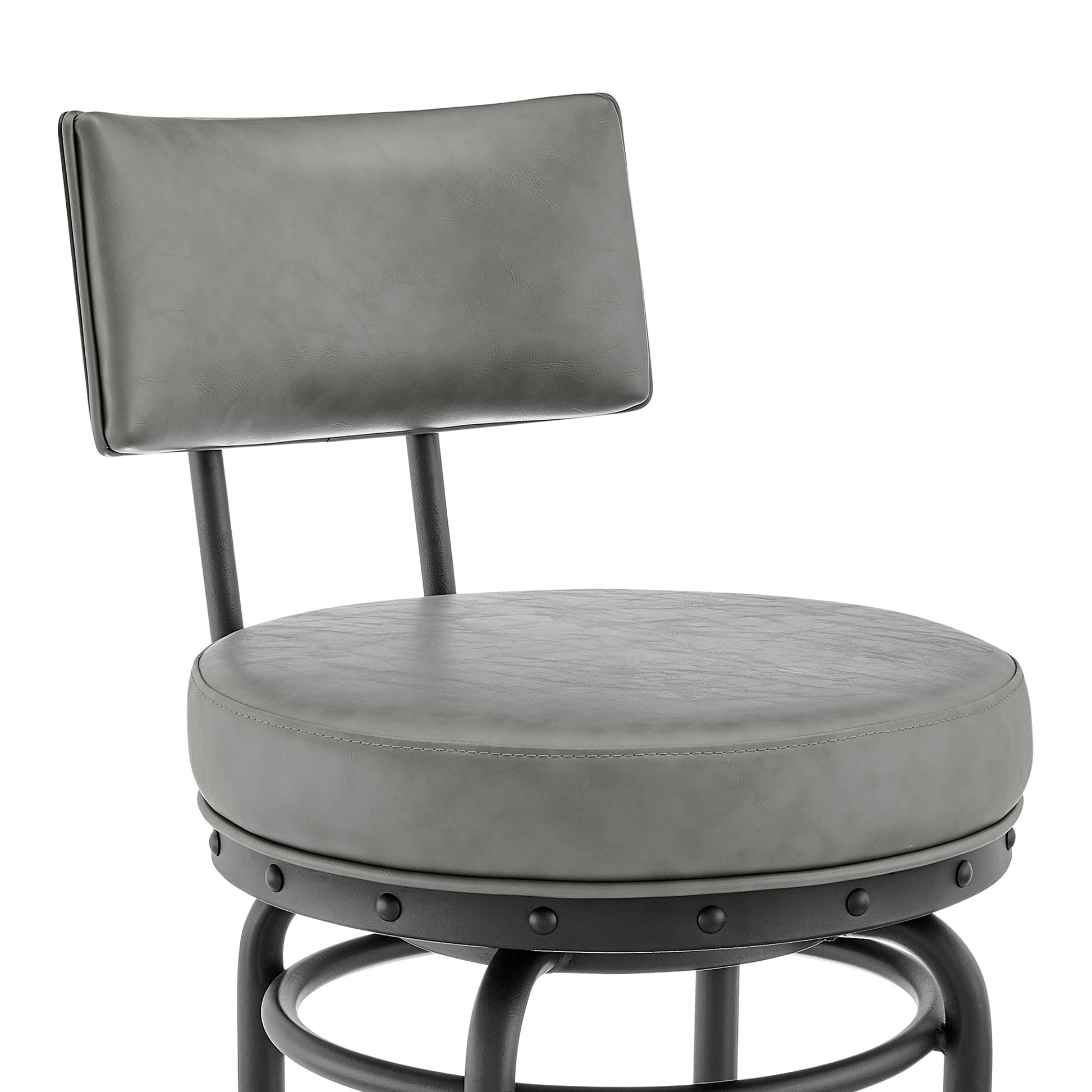 Transform your space with the stylish and inviting design of our Swivel Counter or Bar Stool, expertly crafted with a blend of faux leather and metal. Featuring gracefully curved legs and charming nail head detailing, this stool embodies a modern industrial aesthetic while providing exceptional comfort. The generously padded back and seat are upholstered in durable faux leather, known for its resistance to cracking, fading, and stains, ensuring longevity and ease of maintenance.