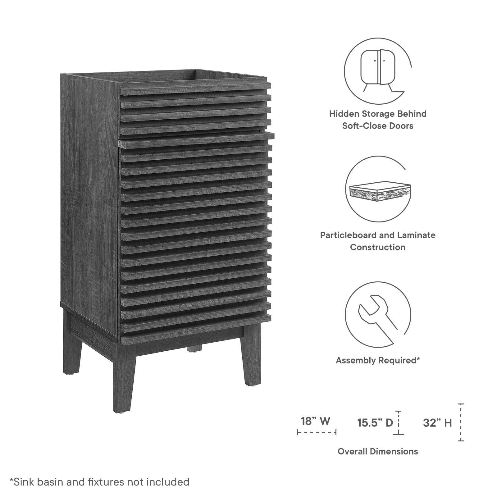 Render 18" Bathroom Vanity Cabinet (Sink Basin Not Included) Charcoal EEI-4849-CHA
