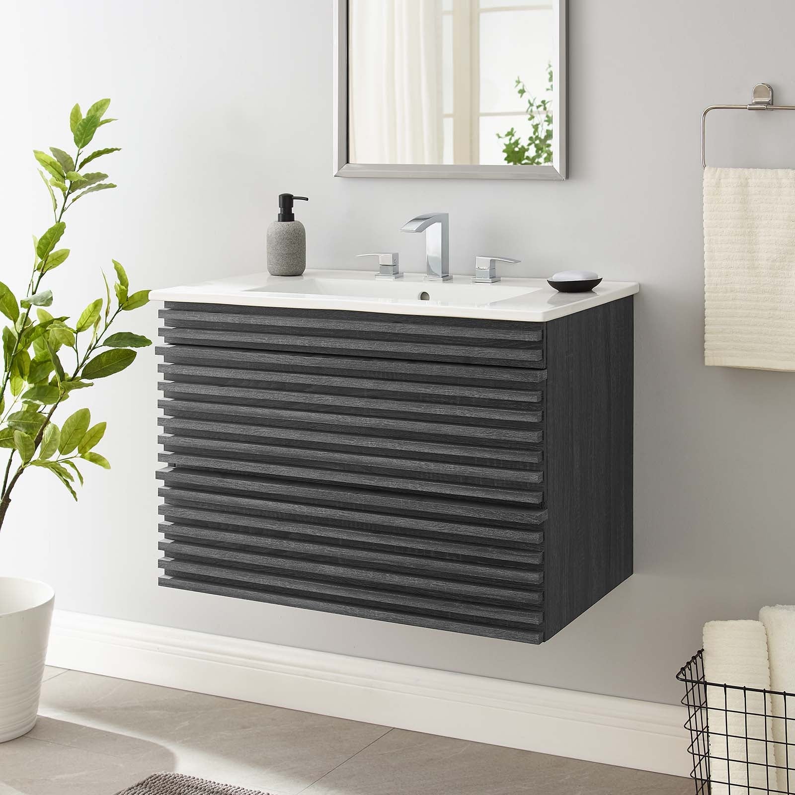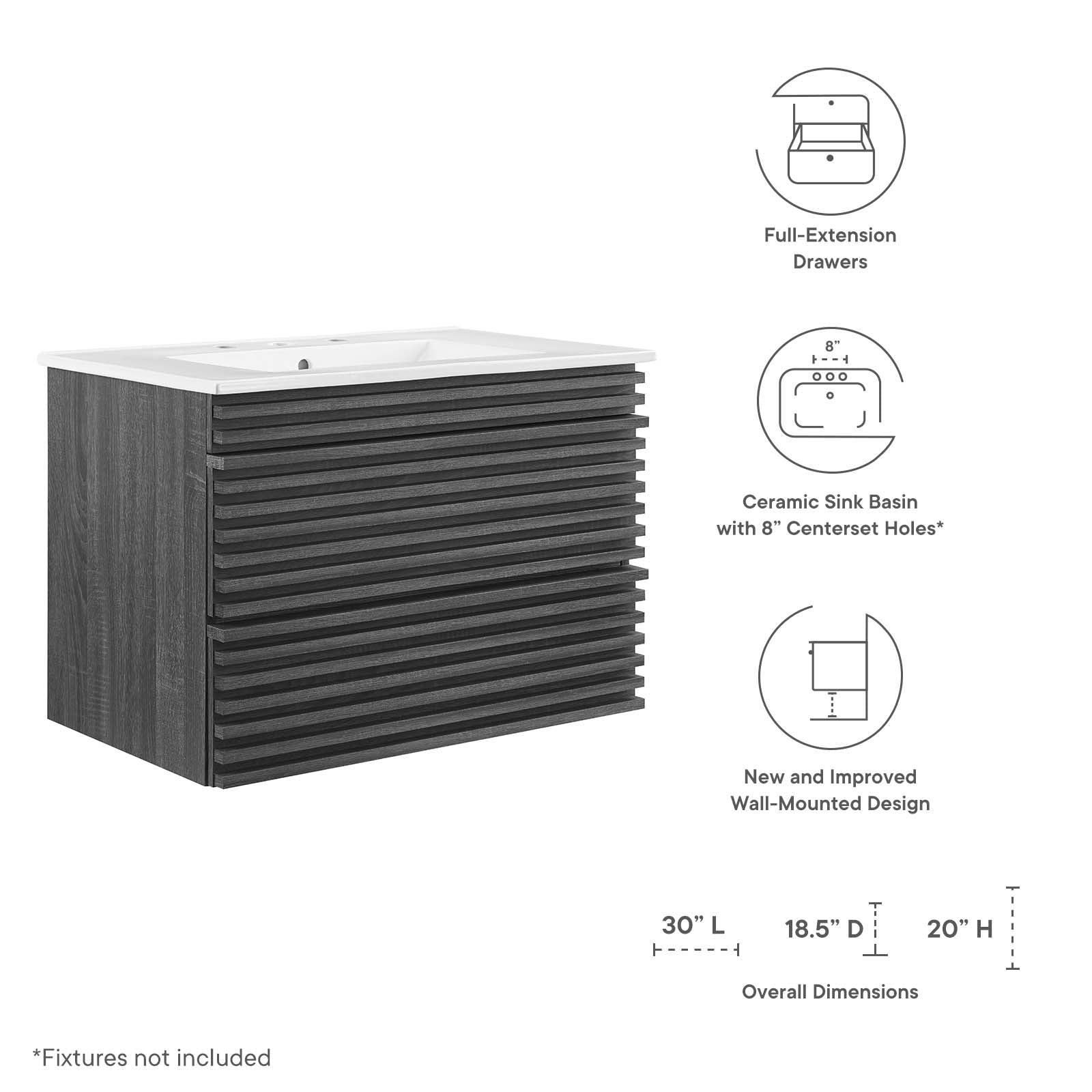 Render 30" Wall-Mount Bathroom Vanity Charcoal White EEI-5421-CHA-WHI