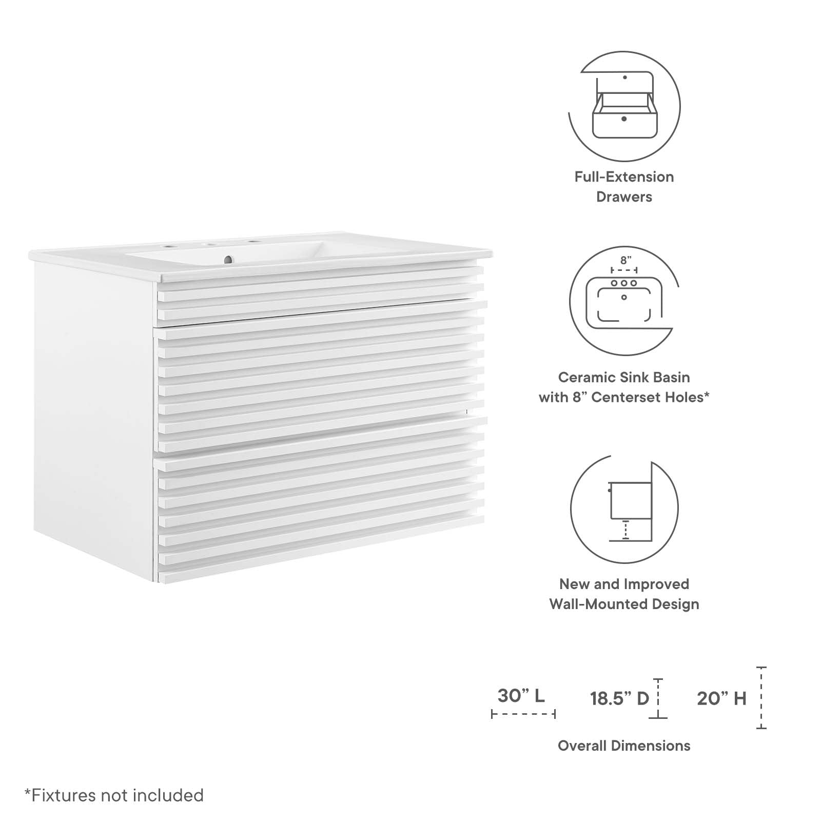 Render 30" Wall-Mount Bathroom Vanity White White EEI-5421-WHI-WHI