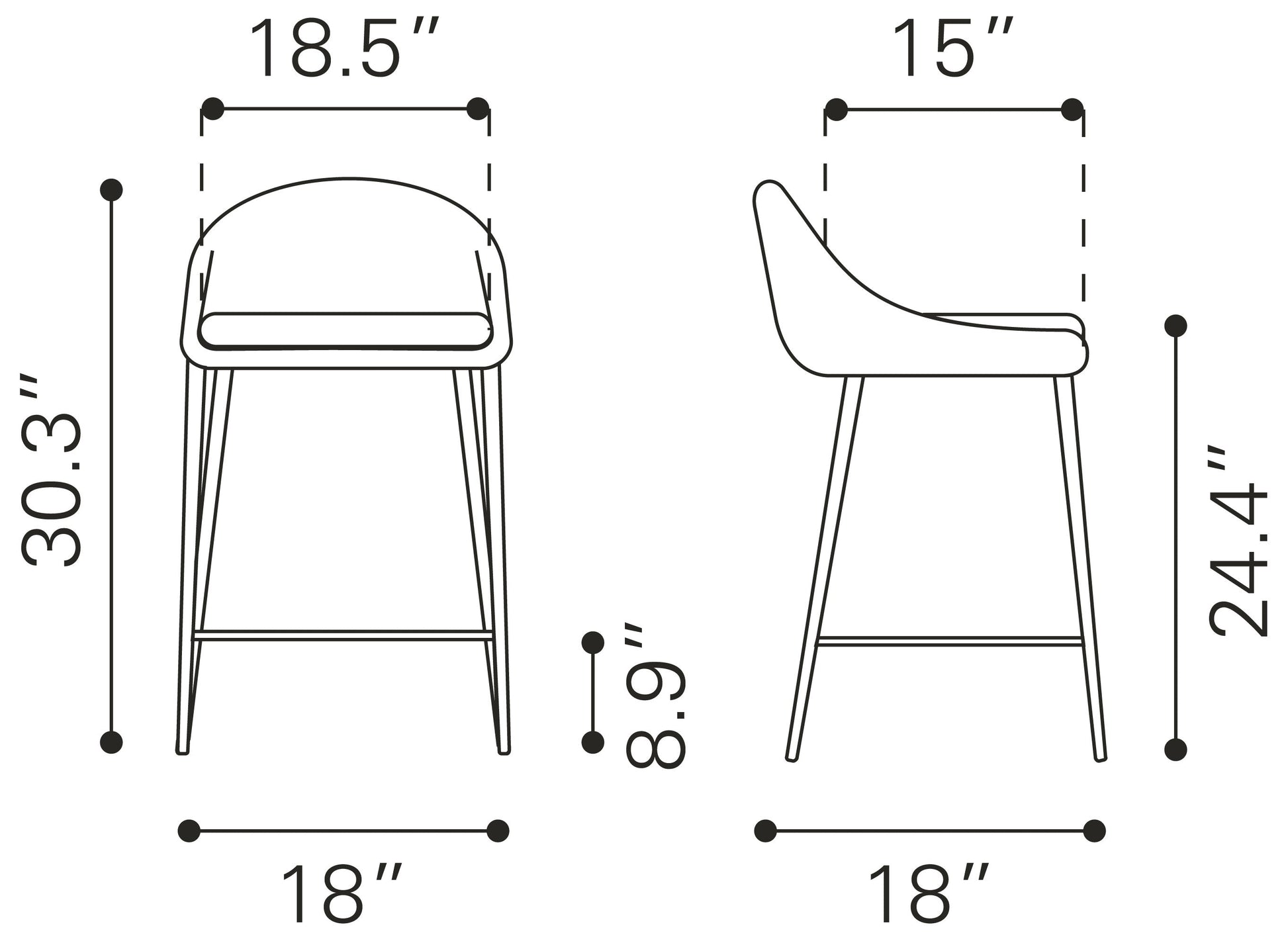 Mad Men-style mod, the Reykjavik counter stool has lovely, mid-century lines. Slender legs give it a svelte silhouette. Comes in tobacco, tangerine, graphite, or pea fabric.