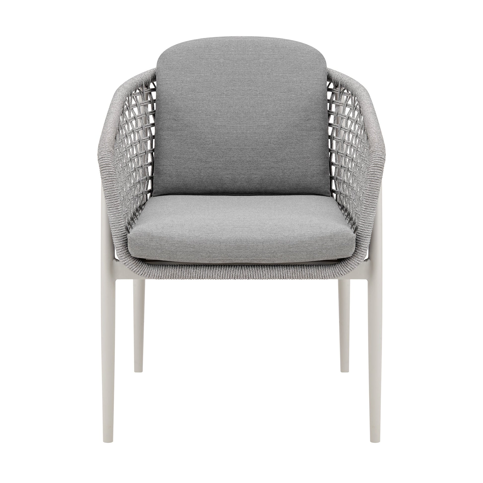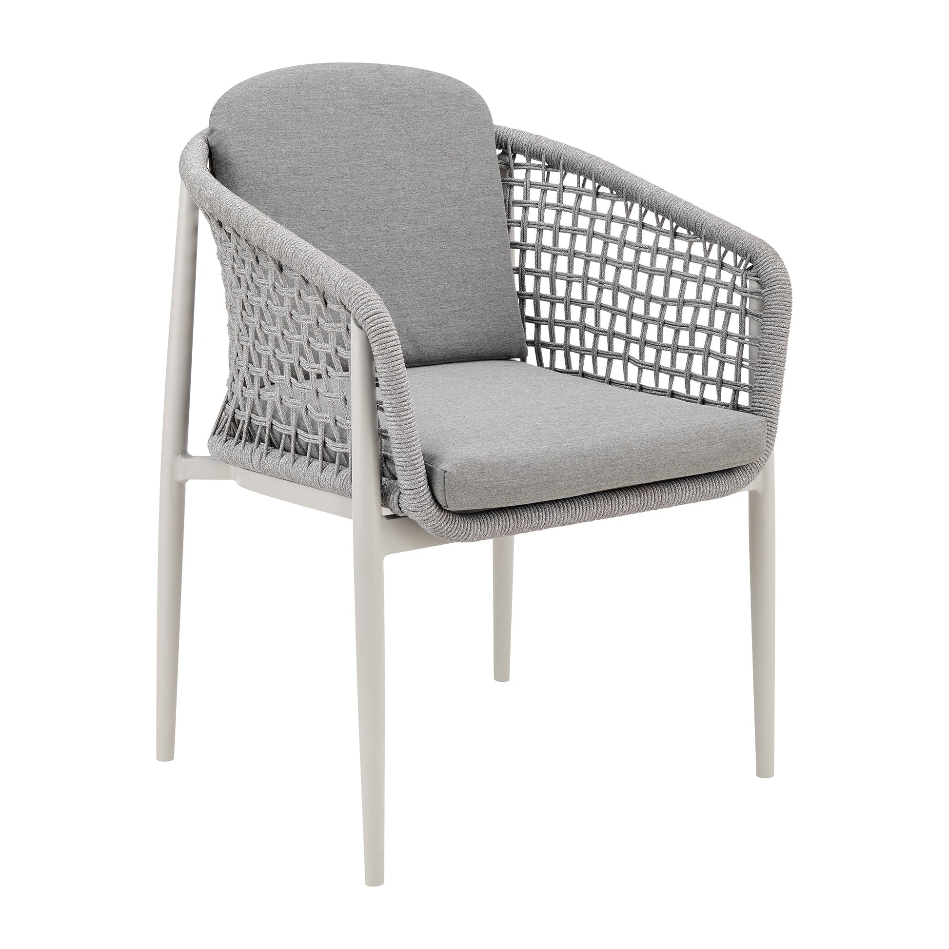 Rhodes Outdoor Patio Dining Chair in Aluminum with Light Gray Rope and Cushions - Set of 2