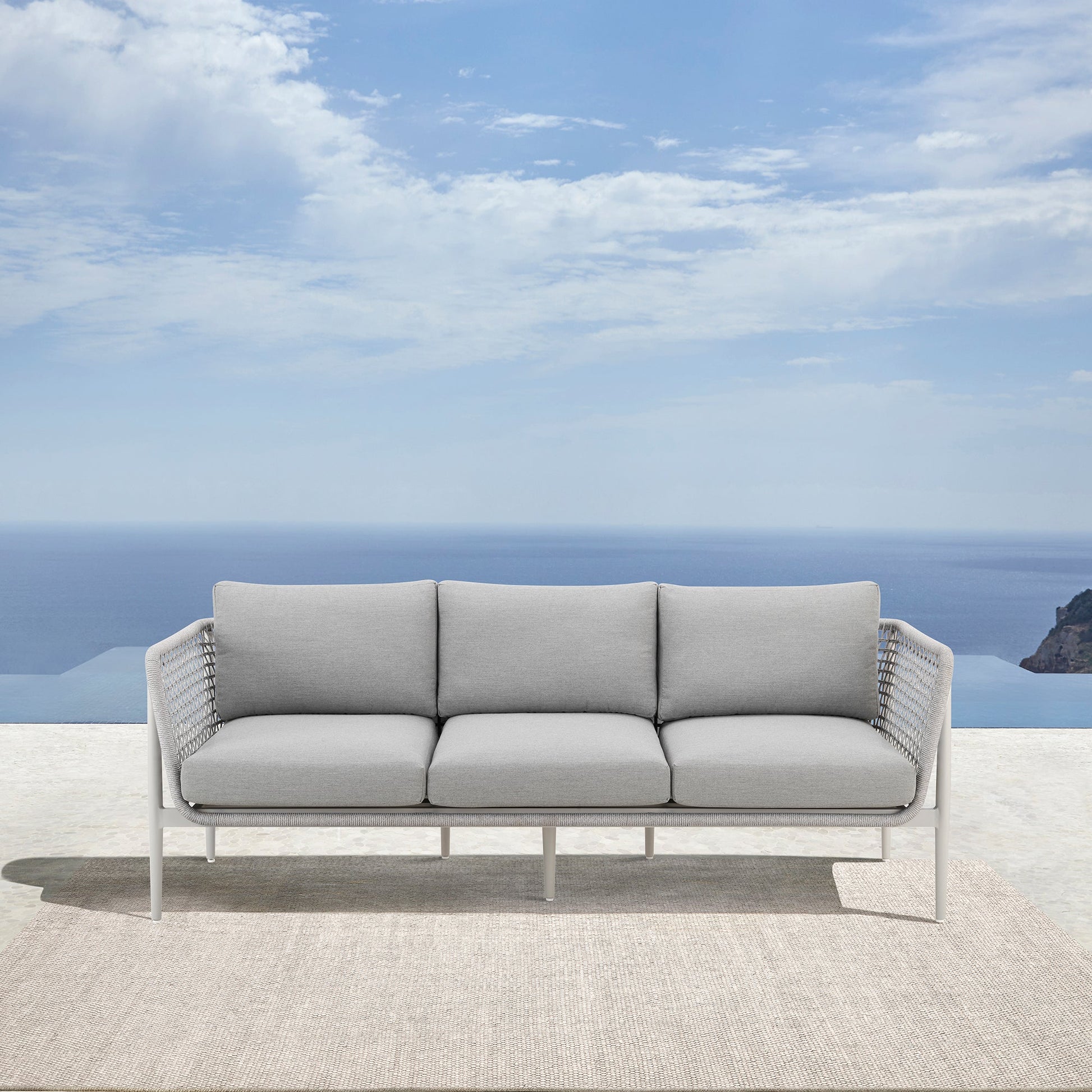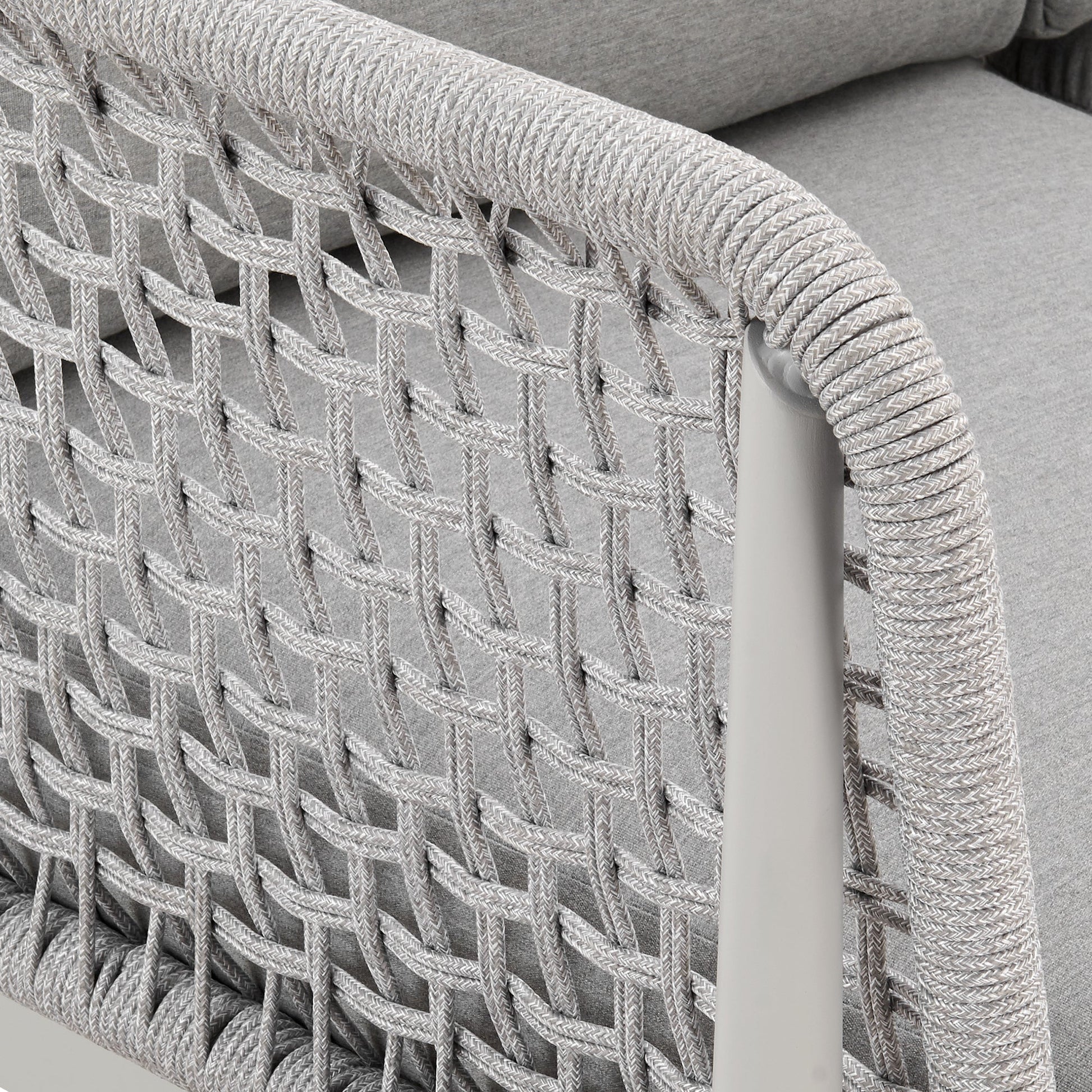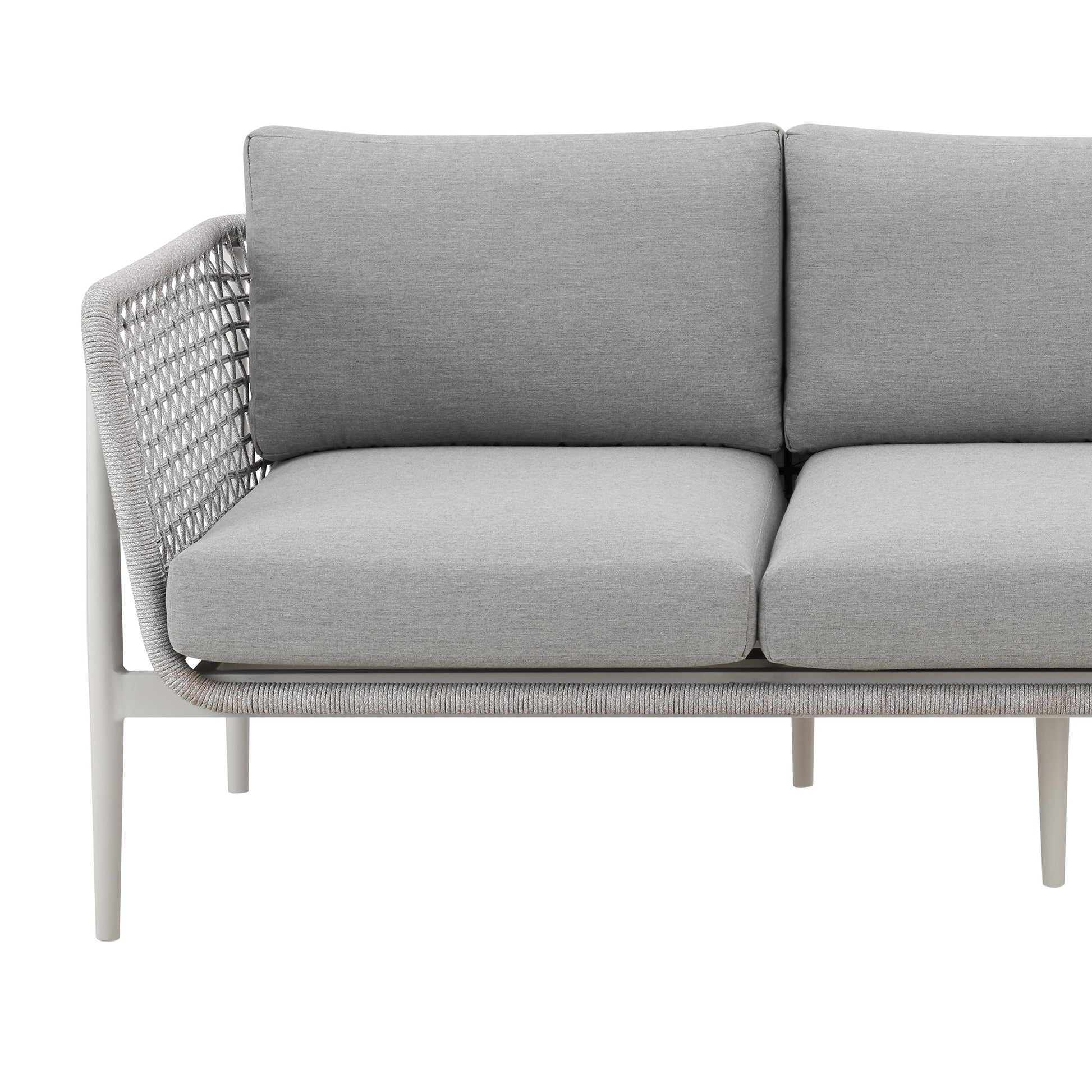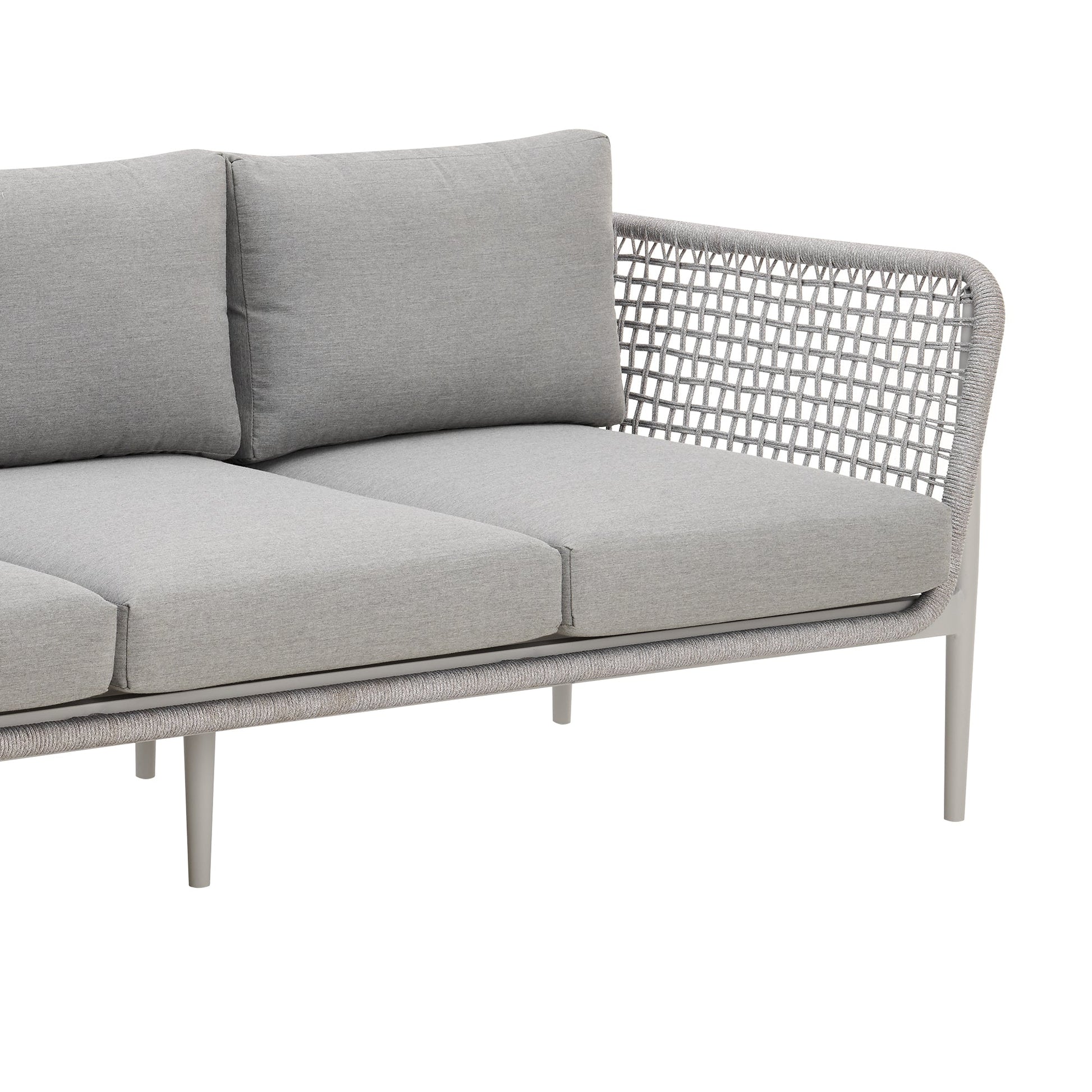 Rhodes Outdoor Patio Sofa in Aluminum with Light Gray Rope and Cushions