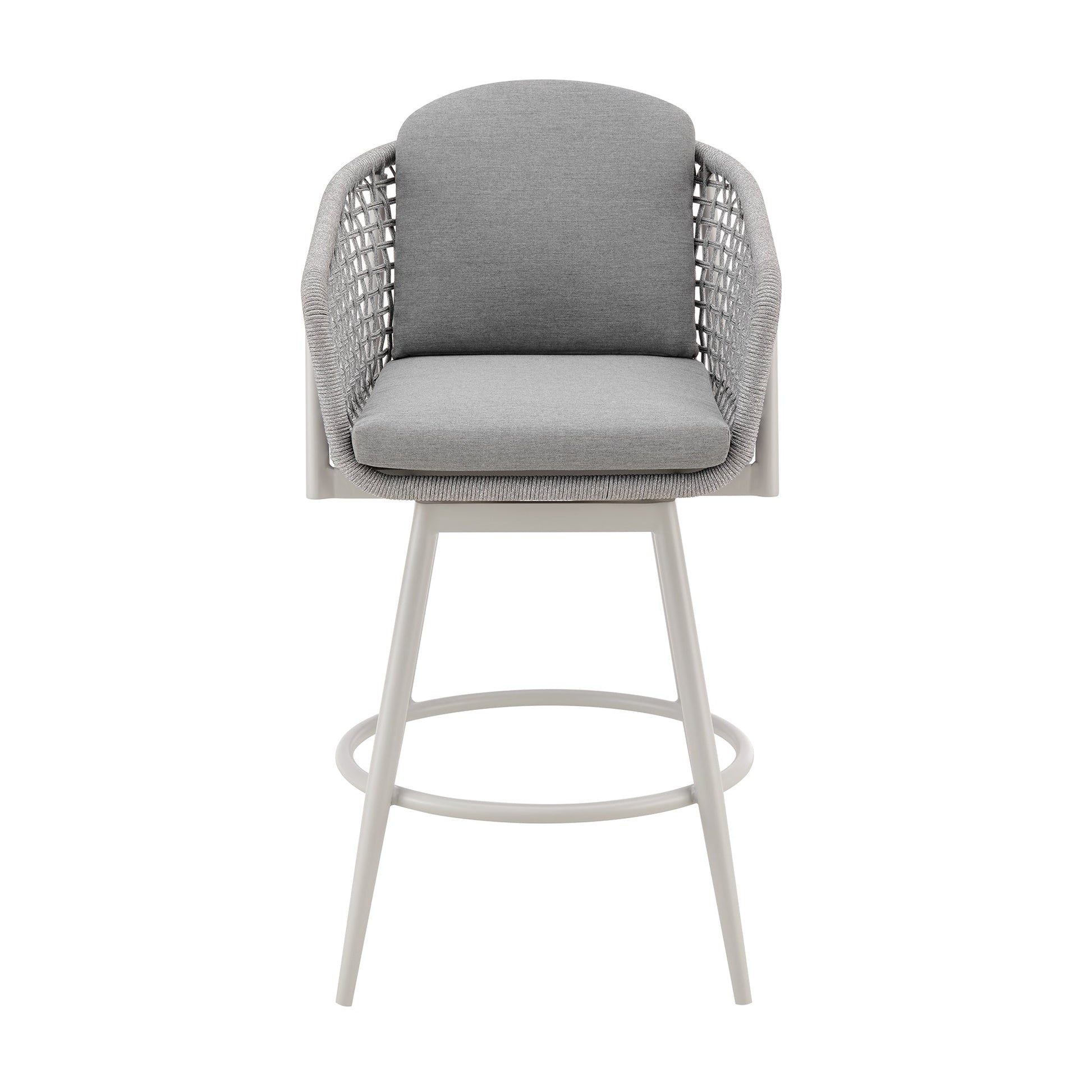 Rhodes Outdoor Patio Swivel Stool in Aluminum with Rope and Cushions