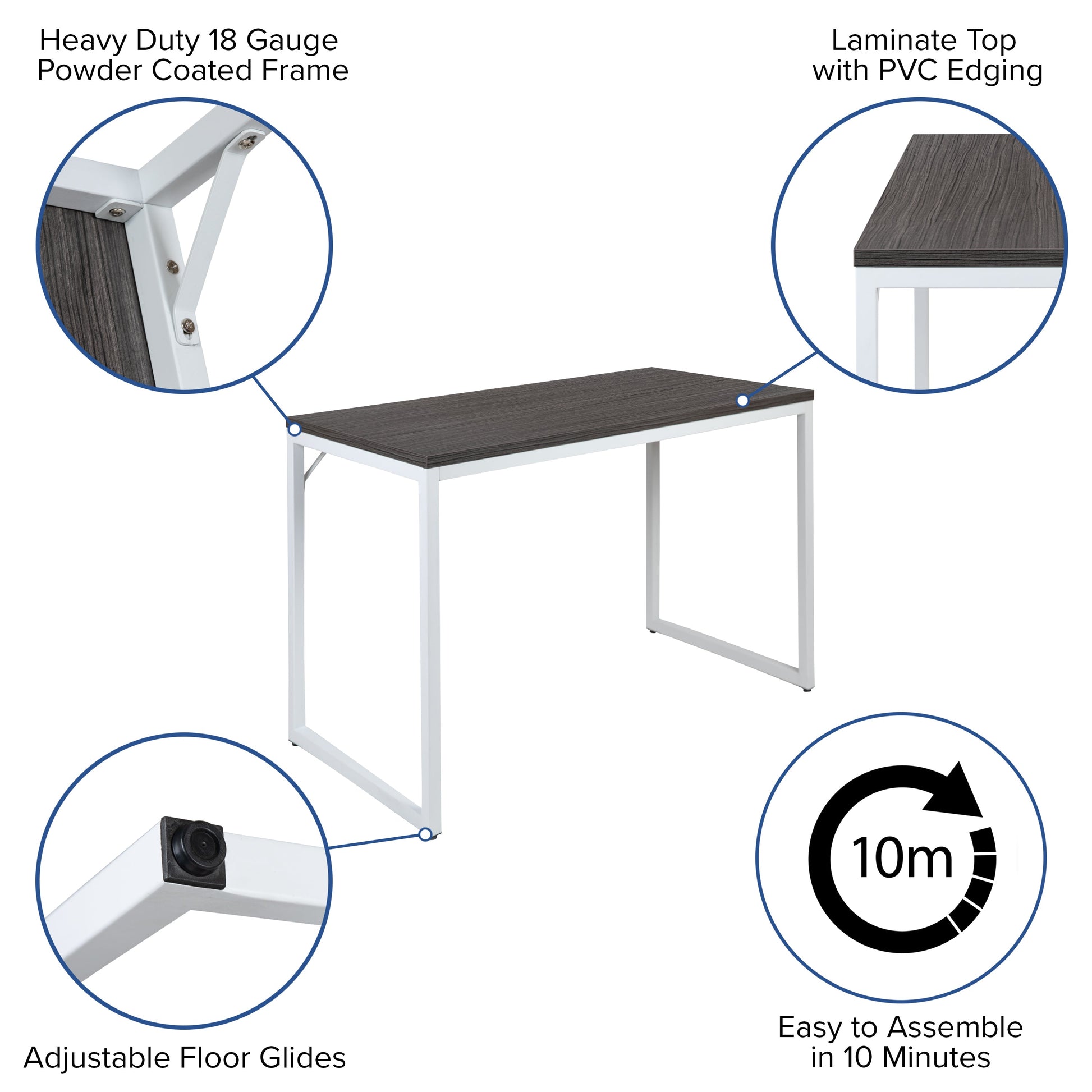 Kimberly Tiverton Industrial Modern Desk - Commercial Grade Office Computer Desk and Home Office Desk - 47" Long (Rustic Gray/White) Dimensions: 47.25"W x 23.5"D x 29.5"H