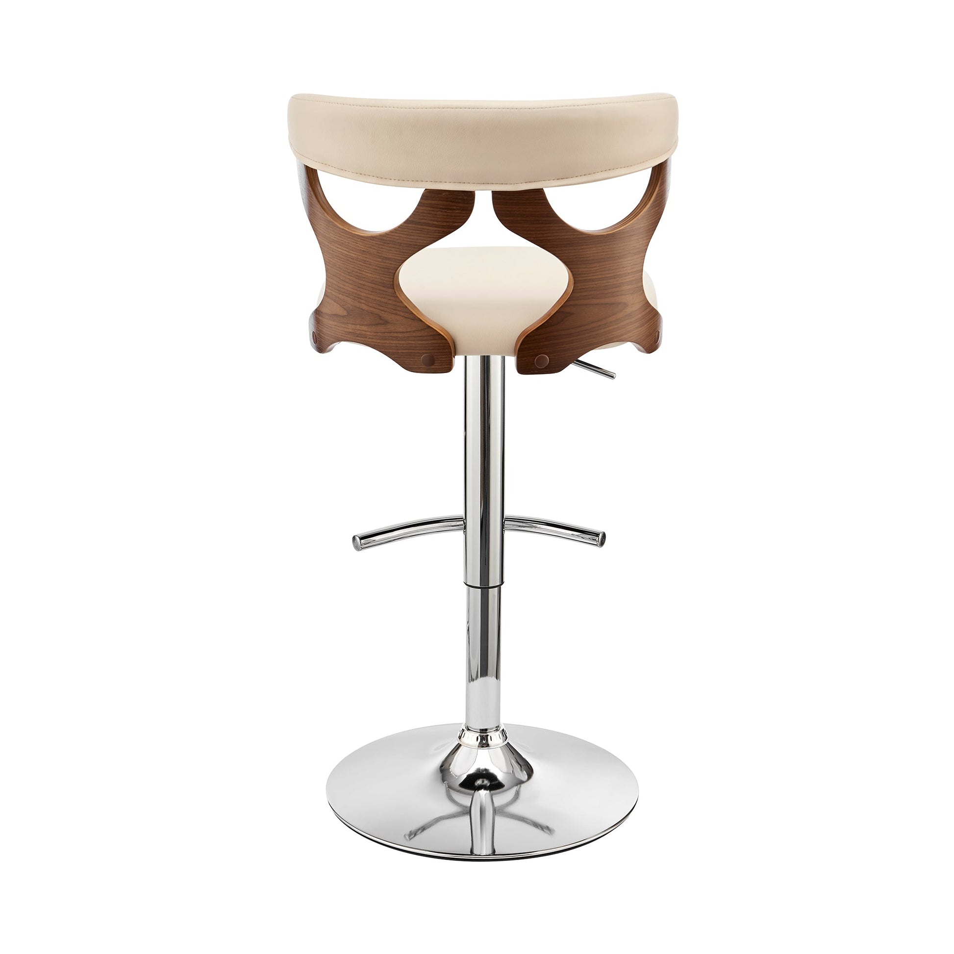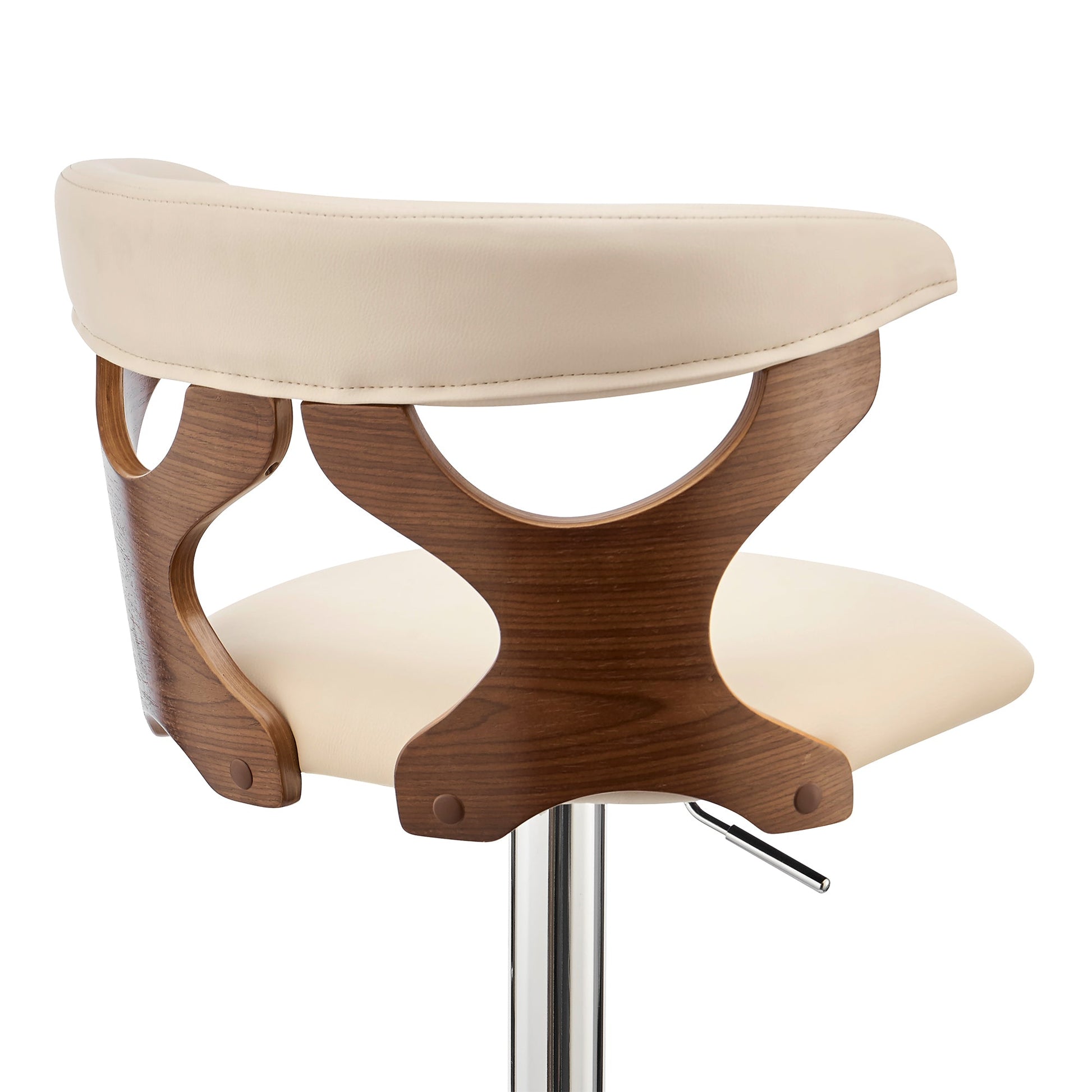 Ruth Adjustable Swivel Cream Faux Leather and Walnut Wood Bar Stool with Chrome Base