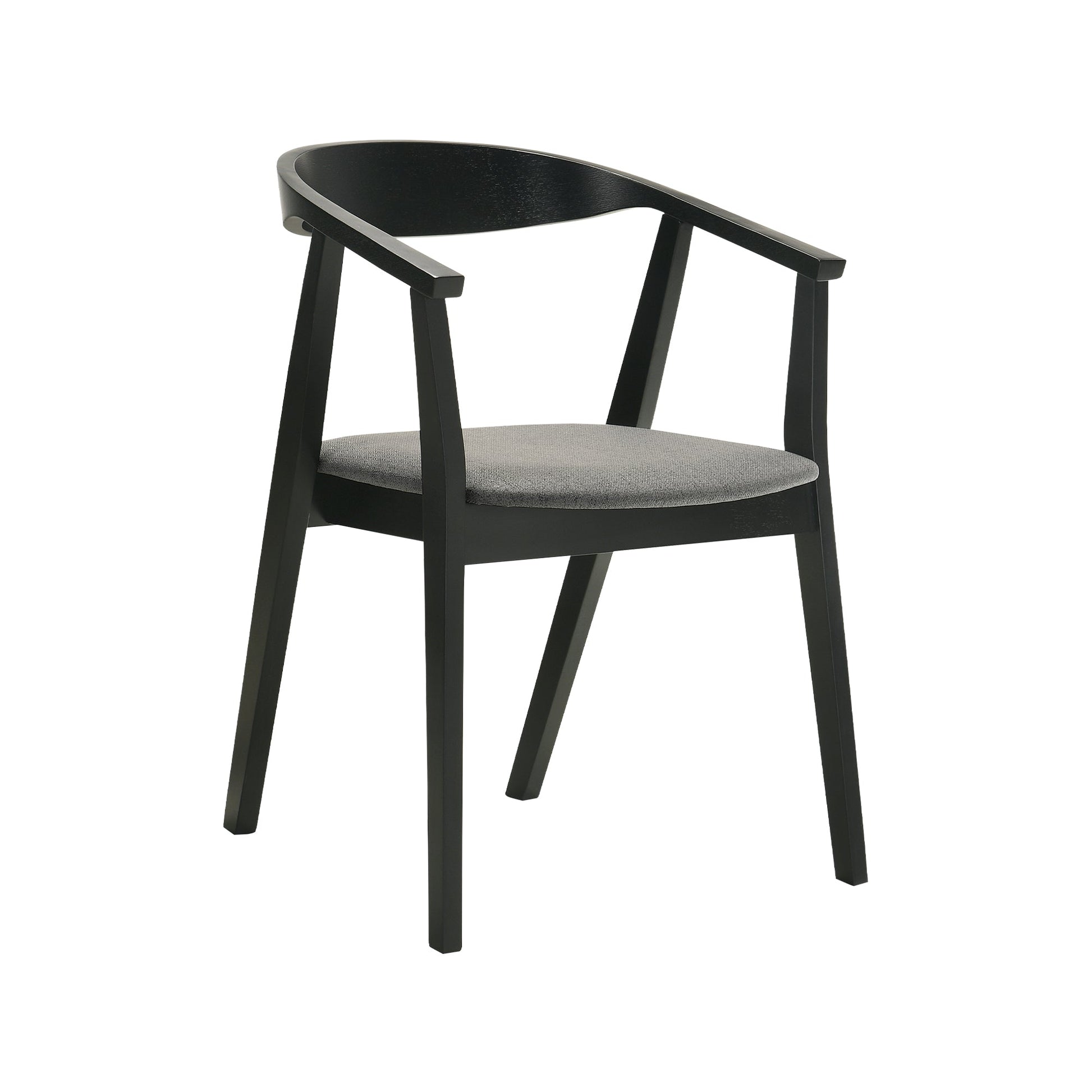 Santana Wood Dining Chair in Black Finish with Charcoal Fabric - Set of 2