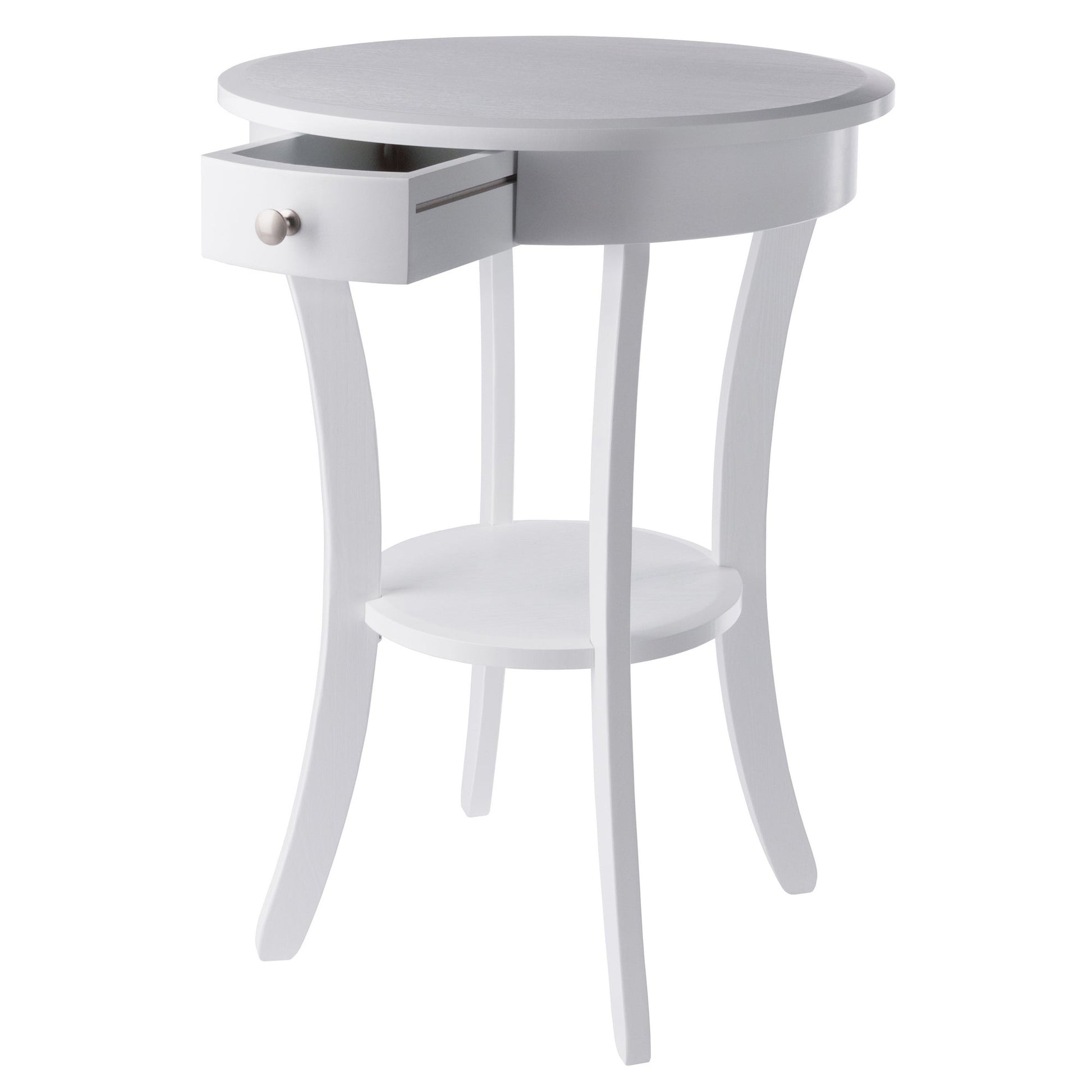 The deluxe size of the Winsome Wood Sasha Accent Table makes it the perfect place to put a variety of items, including books and a lamp, phone, vase or more. This simple yet elegant round table has a curved, smooth design, great addition to the bedroom, living room or where a small but convenient table may be needed. The Sasha table also comes with a drawer for discreet storage or small accessories, along with a bottom shelf for additional display. For larger sofas and rooms, try adding a Sasha table on each side for a more unified look. Made of a combination of solid and composite wood in a classic white finish. The table is ideal for almost any space and will easily mesh well with most home decor. Like most Winsome collections, this Sasha table is available in multiple finishes. Conveniently packed and shipped in 1 box, that includes the hardware necessary for assembling. Replacement part request can be submitted directly to the manufacturer within 60 days from date of purchase.