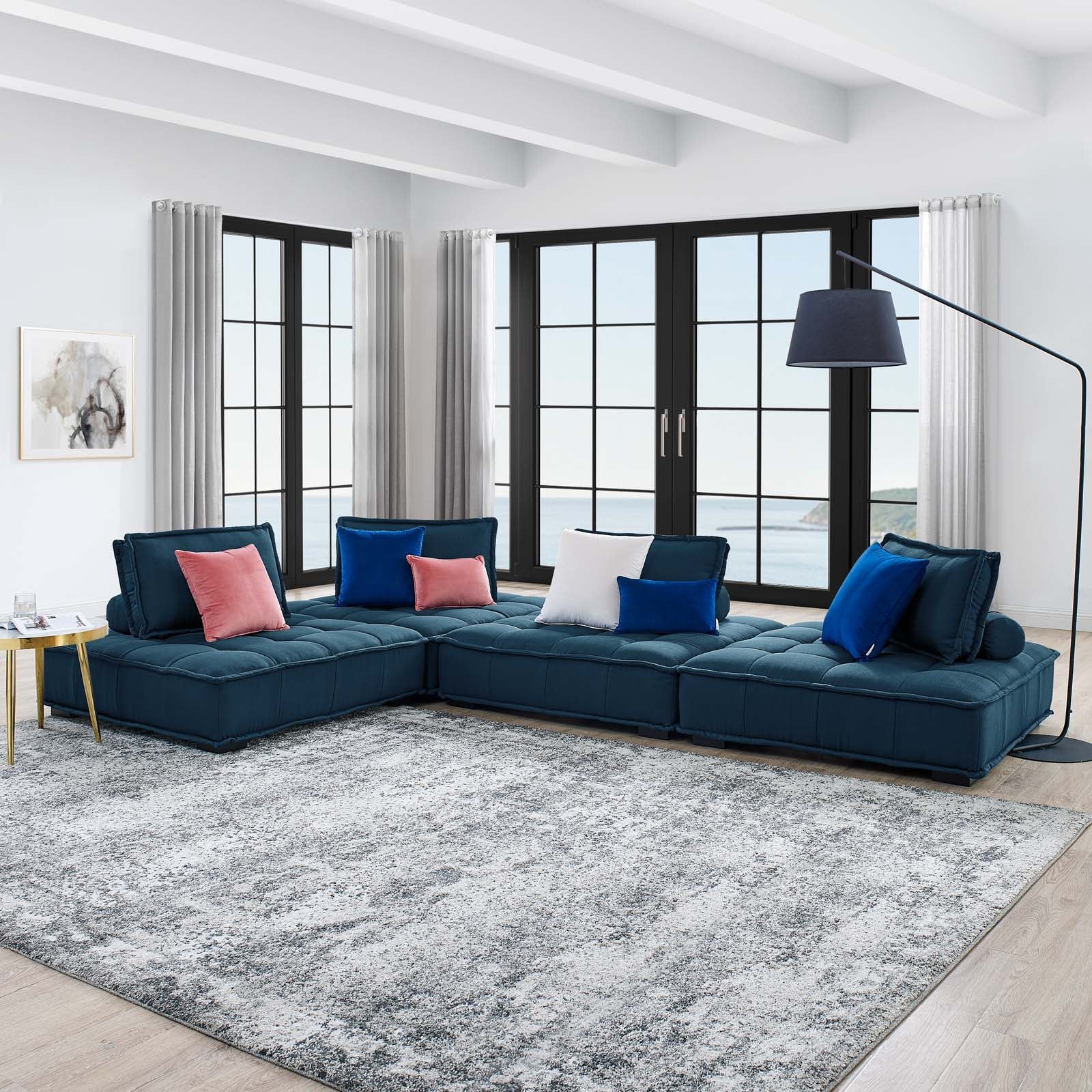 Saunter Tufted Fabric Fabric 4-Piece Sectional Sofa Azure EEI-5208-AZU