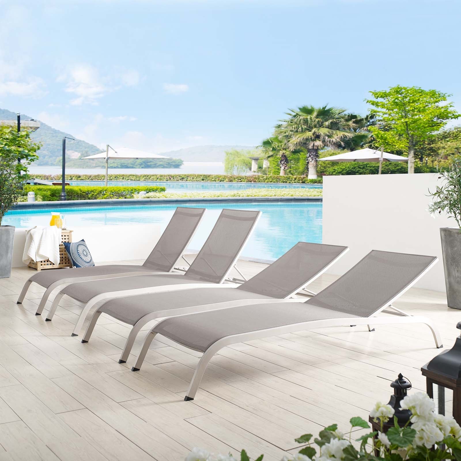 Transform your outdoor area into a stylish retreat with the Savannah Outdoor Patio Mesh Chaise Lounge Set. Experience the perfect combination of comfort and elegance, and let your patio become the go-to spot for relaxation and social gatherings. Embrace the vintage glamour and create lasting memories in your outdoor oasis.