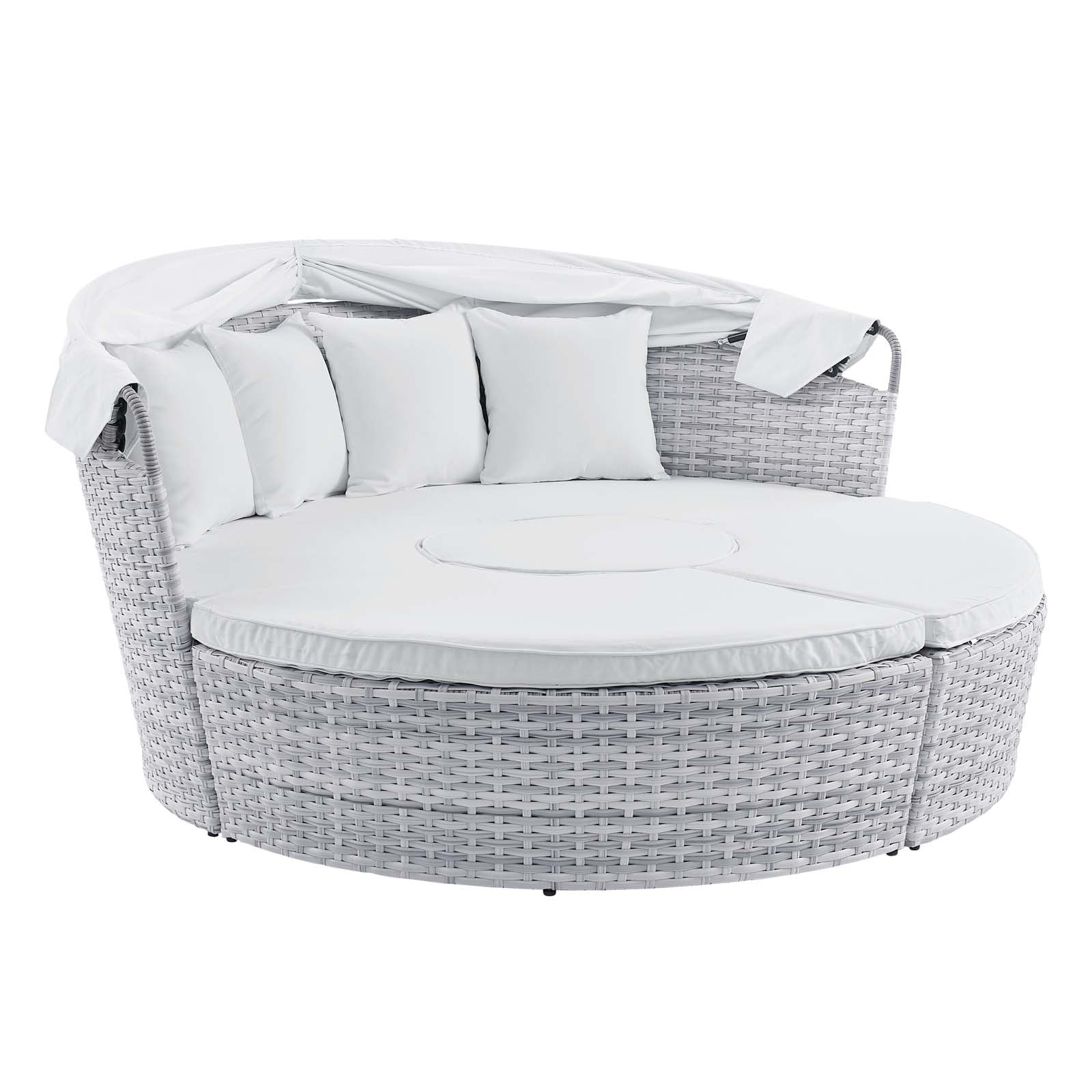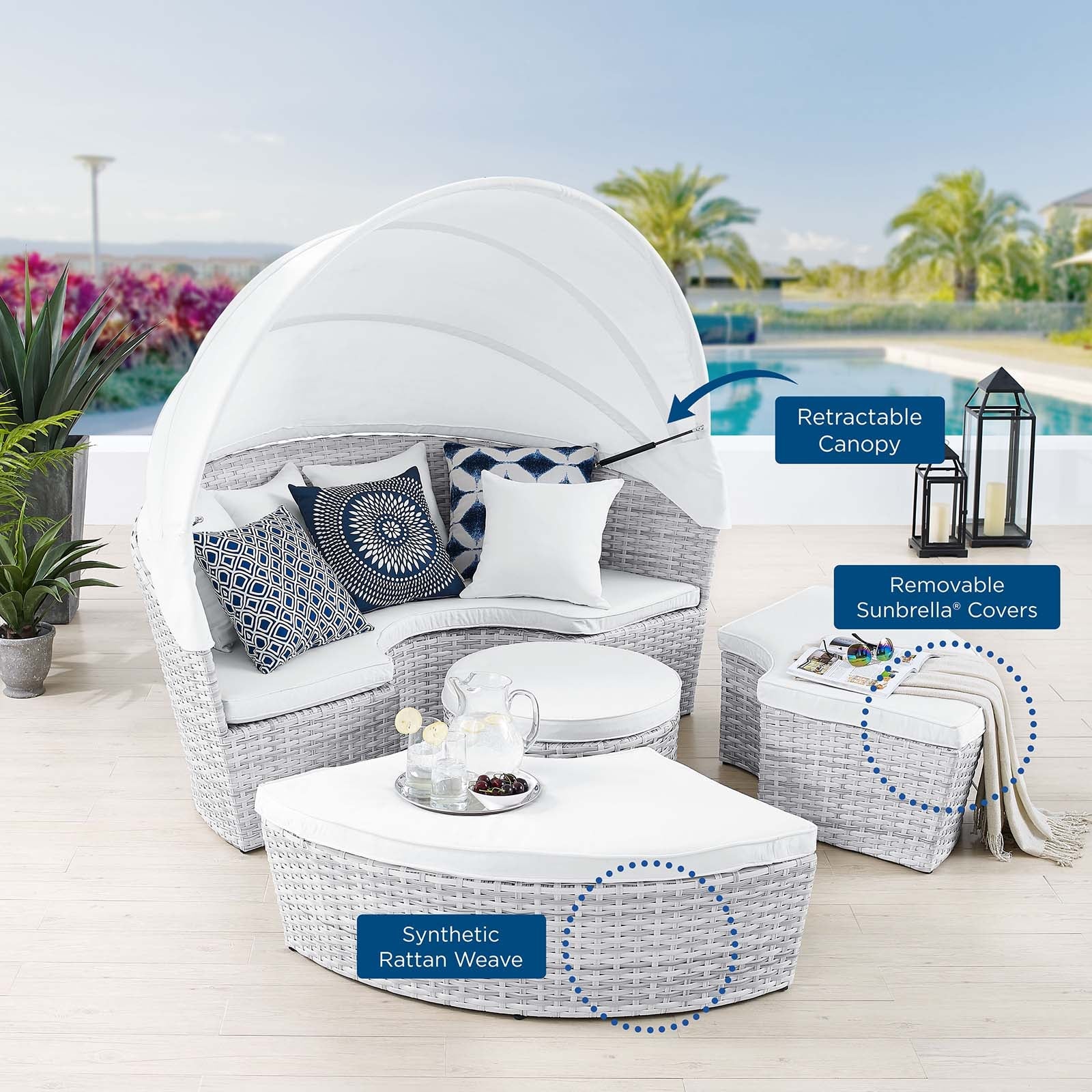 Scottsdale Canopy Sunbrella® Outdoor Patio Daybed Light Gray White EEI-4443-LGR-WHI