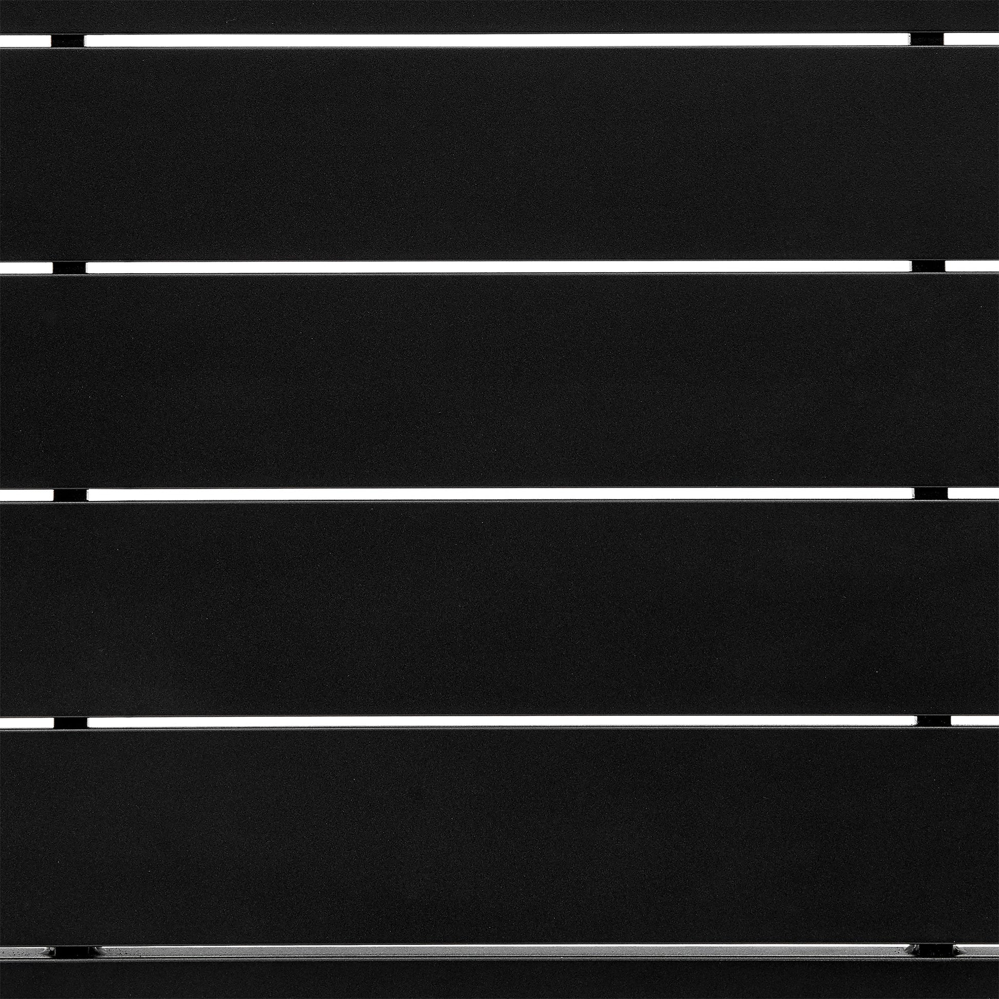 Your outdoor space is instantly elevated with the Shari Outdoor 4-piece set by Armen Living! This patio conversation set includes 2 lounge chairs, 1 sofa, and 1 rectangular coffee table. The outdoor patio chairs and sofa with cushions have removable cushions and feature a zipper closure, making clean up a breeze! The chic aluminum table, chair, and sofa frames feature a multi-layer powder coating for effective protection from the weather, everyday wear, and tear. The slat style tabletop helps elements to easily pass through which adds to its durability. The Shari 4-piece outdoor set is available in a black finish with dark gray cushions and natural teak wood accents. Aluminum is a light and rust proof material and can be moved from your backyard, to your screened in porch, to your garden with ease! The modern, clean line silhouette which is complimented further by the beautiful teak wood arm accents and the geometric barrel style back. The teak accents on the arms give the chairs and sofa a warm touch, strong and durable, teak can last for generations in a wide variety of climates with zero maintenance making this a desirable piece of outdoor furniture. This is due to the high rubber and oil content of the wood that leave it impervious to rain, weather, and pests, making it virtually immune to rot. The dark gray cushions feature high density foam that will allow for many hours of comfortable seating. The strong aluminum coffee table ties this set together and enhances the convenience by giving you a perfect surface for food and drinks. Without having to worry about any damage from UV, water, or rust – the Shari is the ideal outdoor patio furniture set that you need! The sofa and chairs have a seat height of 17-inches. The lounge chairs can support up to 330lbs each, and the sofa can support up to 660lbs.