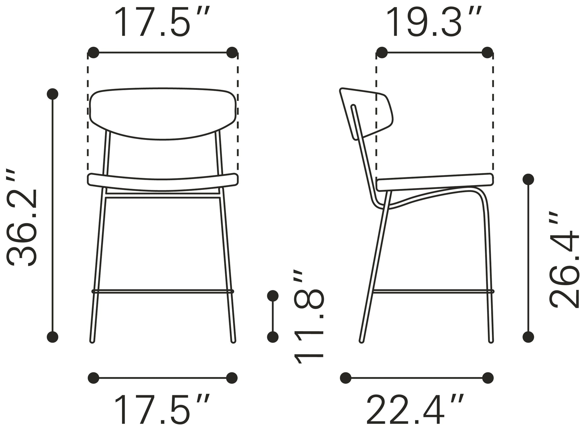 Comfy and bauhaus, the Sharon counter stool has a steel frame with powder coated steel legs and is wrapped in vinyl. This chair completes any dining room, bar or kitchen, in any design, modern minimal or boho industrial.