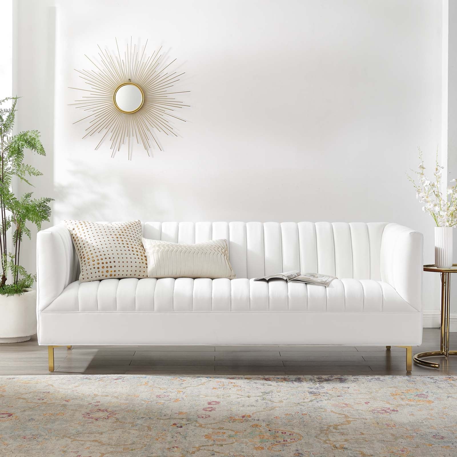 Shift Channel Tufted Performance Velvet Sofa White EEI-4132-WHI