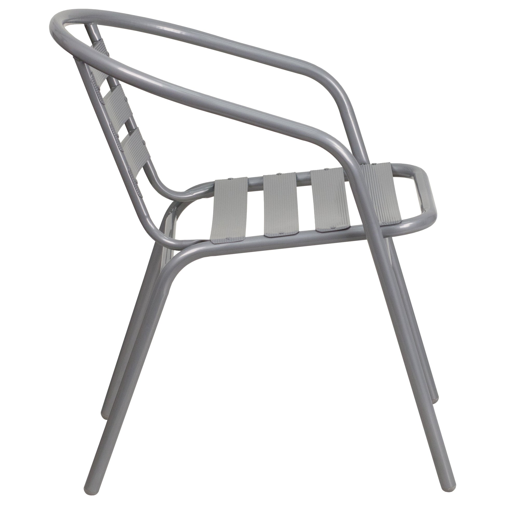 Lila Silver Metal Restaurant Stack Chair with Aluminum Slats Dimensions: 21.5"W x 24"D x 28.5"H