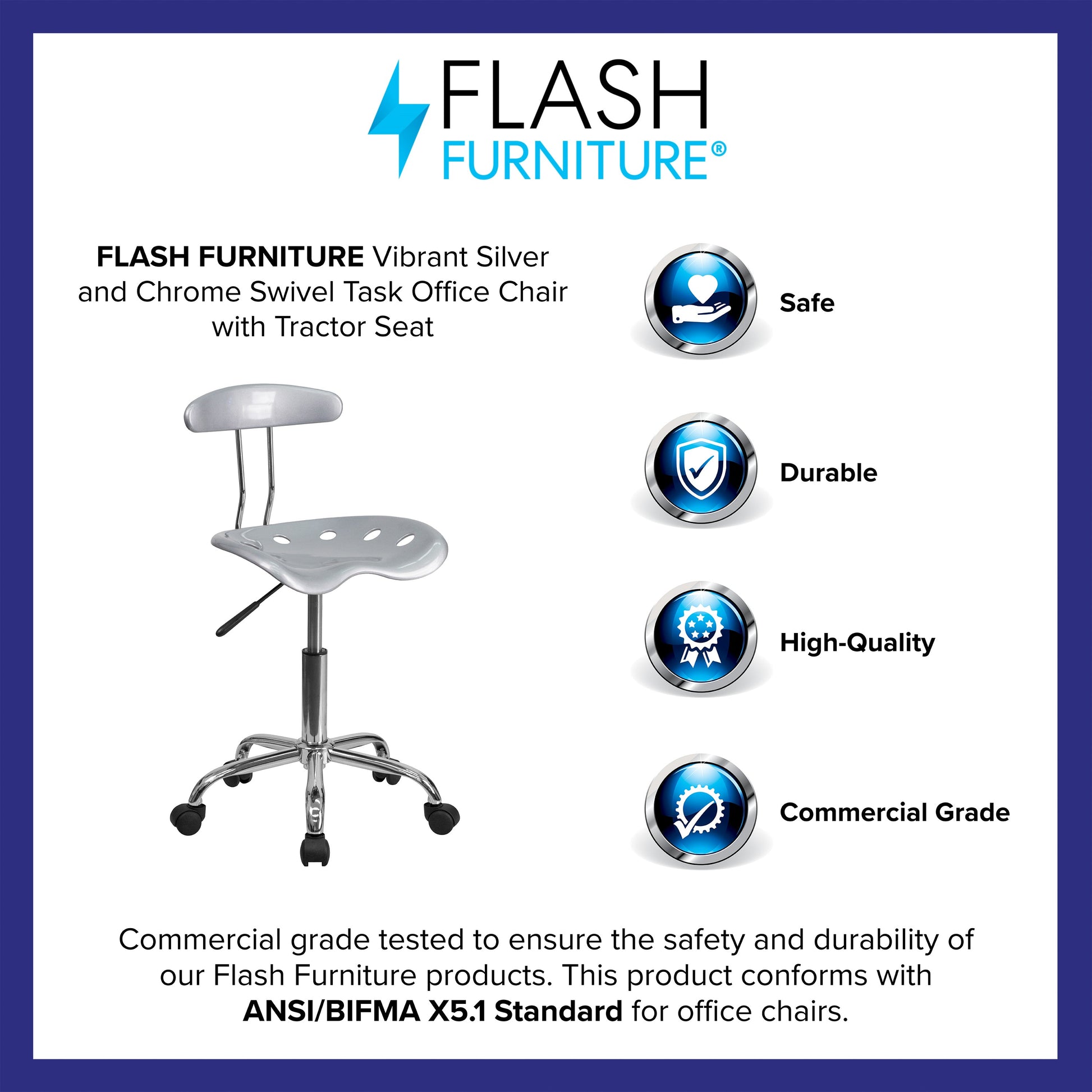 Elliott Vibrant Silver and Chrome Swivel Task Office Chair with Tractor Seat Dimensions: 17"W x 16.5"D x 29.25" - 34.75"H