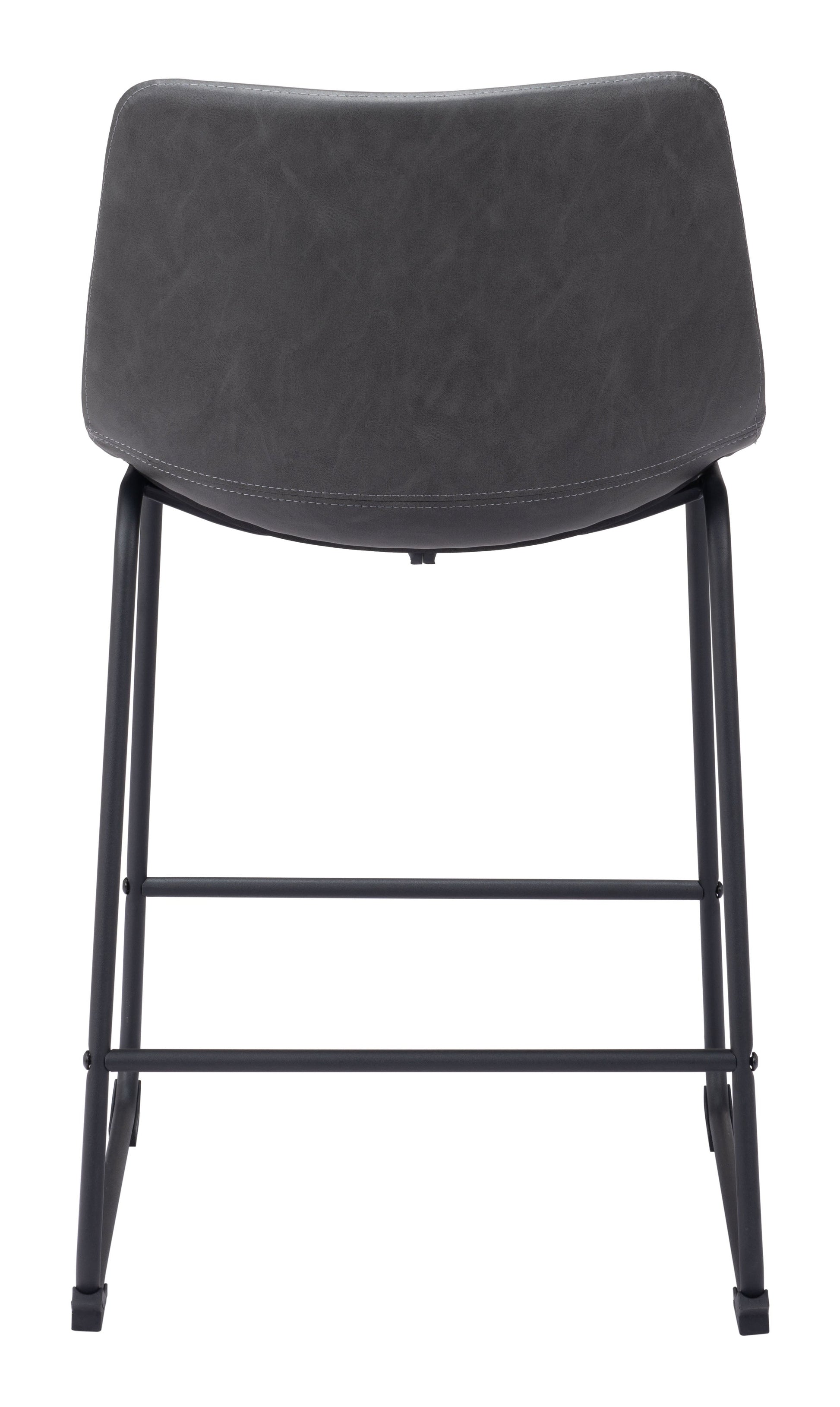 This counter stool's seat and back are built with a sculpted design for comfort. It's upholstered in a soft 100% Polyurethane fabric, with a slim profile metal base and two crossbars for stability. The frame is finished in matte black, for a universal appeal.