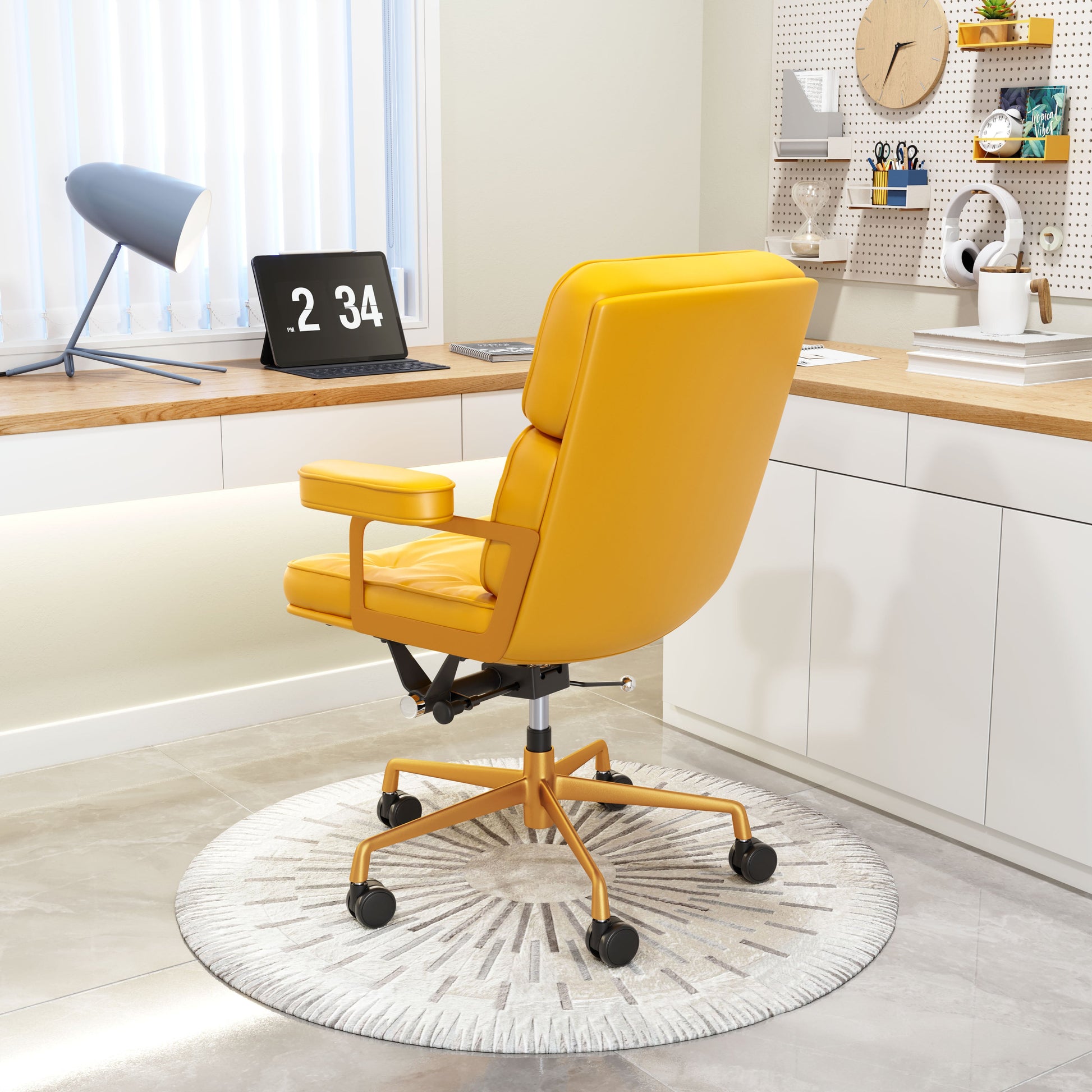 The Smiths Office Chair has durable vinyl wrapped plush cushions on a powder coated steel frame, with a tilt height adjustable powder coated steel rolling base. This chair gives any home office or hotel room a mid century modern feel.