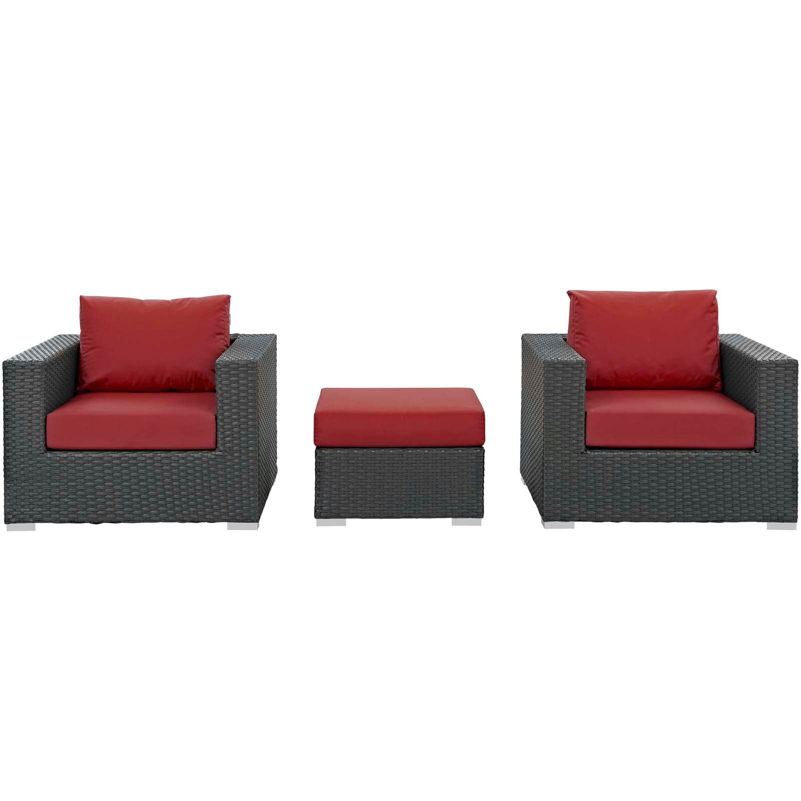 Sojourn 3 Piece Outdoor Patio Sunbrella® Sectional Set Canvas Red EEI-1891-CHC-RED-SET