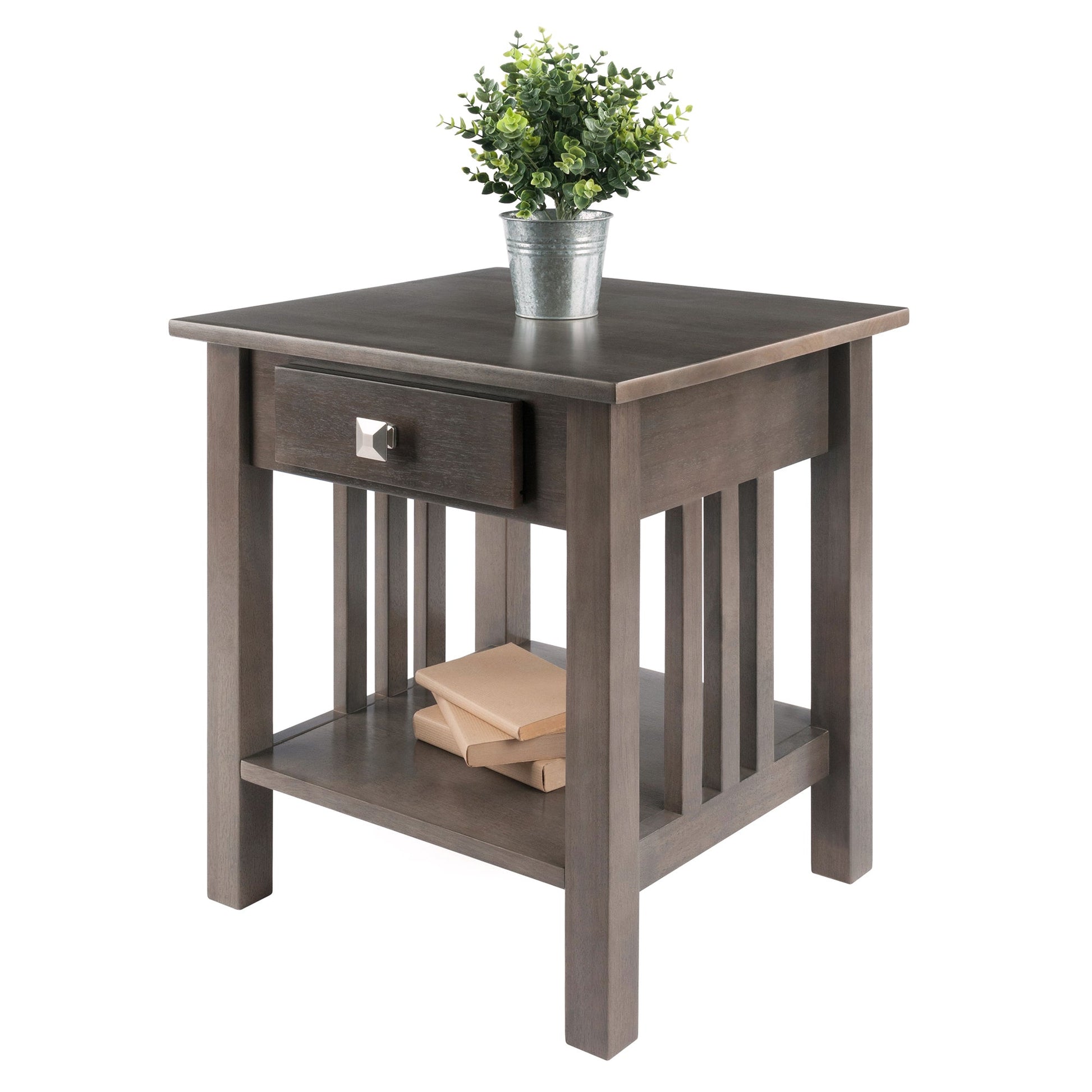 A handsome blend of classic and contemporary styling enables the Winsome Wood Stafford End Table to complement any decor. The mission-like slatted side panels create an open feel while the oyster gray finish gives it a modern touch. Featuring one drawer making this accent table just right by your bedside for a reading lamp, storing small personal accessories out of sight, yet within easy reach for your convenience. The drawer is tastefully accented with a beveled silver-finish pull. An open lower shelf is ideal for keeping books and magazines. Use this all-around end table in the living room next to the sofa or a printer stand in your home office. For larger beds, sofas or rooms, try adding one accent table on each end and coordinate with other furnishings from the Winsome Stafford collection for a cohesive look throughout your home (each sold separately). Solid and composite wood construction for long-lasting beauty and durability. Conveniently packed and shipped in 1 box that includes the hardware necessary for assembling. Replacement part request can be submitted directly to the manufacturer within 60 days from date of purchase.