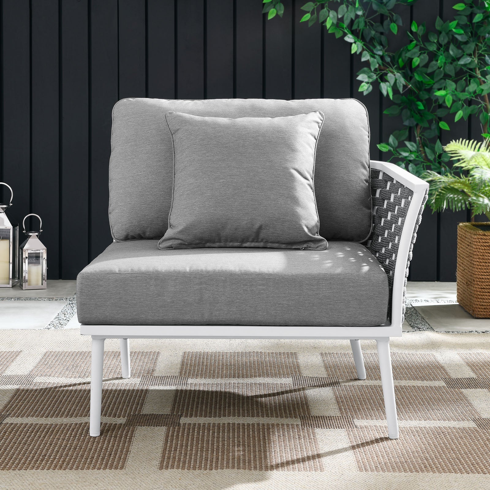 Stance Outdoor Patio Aluminum Right-Facing Armchair White Gray EEI-5566-WHI-GRY