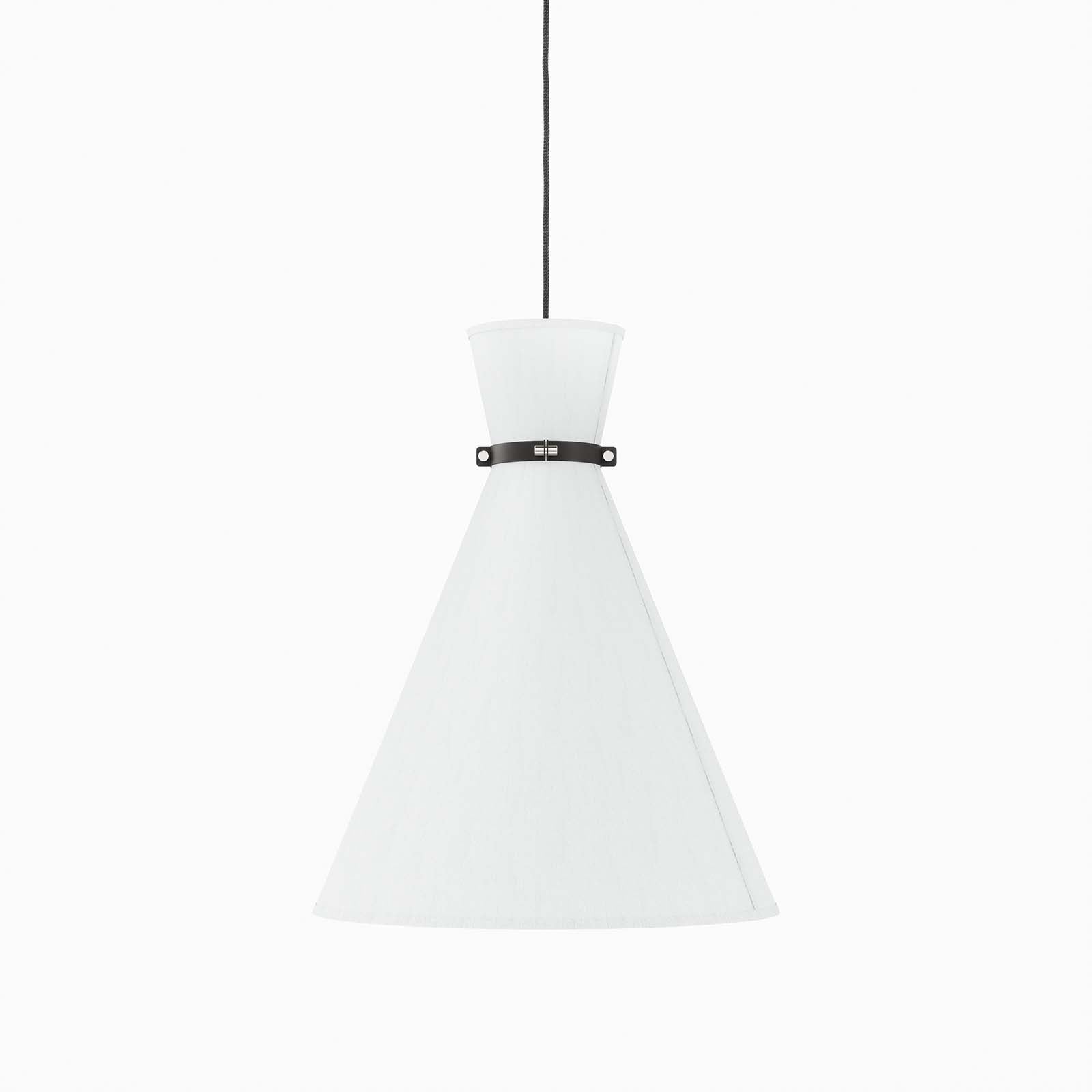 The Starlight 1-Light Pendant radiates a warm glow across its surroundings. Designed to give purposeful task lighting in a bathroom, bedroom, dining room, kitchen, entryway, or other living space, this hanging light steals the show with its contemporary hourglass shape. The fabric shade features a matte black neck cinch. Compatible with sloped ceilings, this pendant light is suspended by a ceiling canopy and an adjustable fabric cable to accomodate a range of ceiling heights. This light fixture requires one E26 bulb 60W max or LED equivalent (not included). Damp rated for use in the bathroom. Professional installation required.