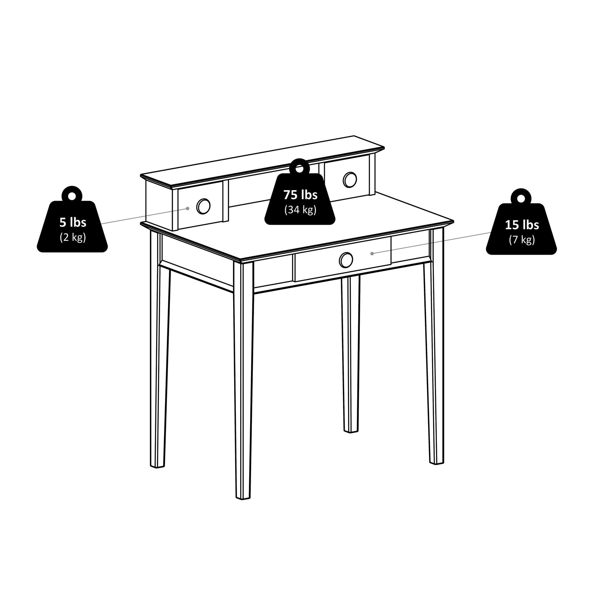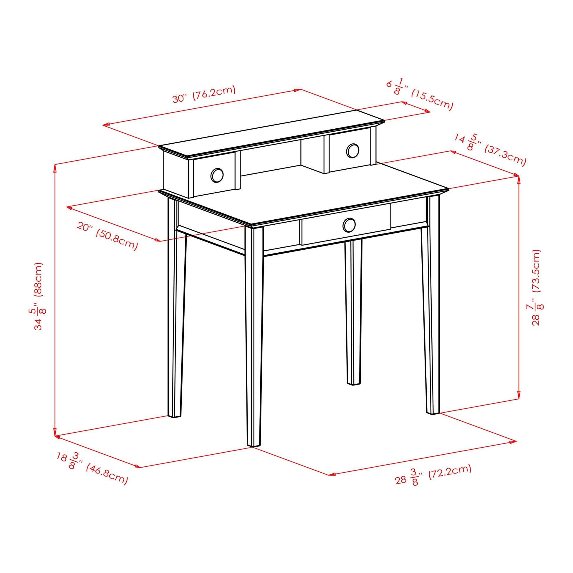 This old-fashioned writing desk is updated with a sturdy frame and the sleek Honey Pine finish. The three drawers and shelf space provide plenty of room to store all of your stationery supplies. Mix and match with the rest of the Studio Home Office line.Dimensions : 30 in. Wide 20.19 in. Deep 34.65 in. High