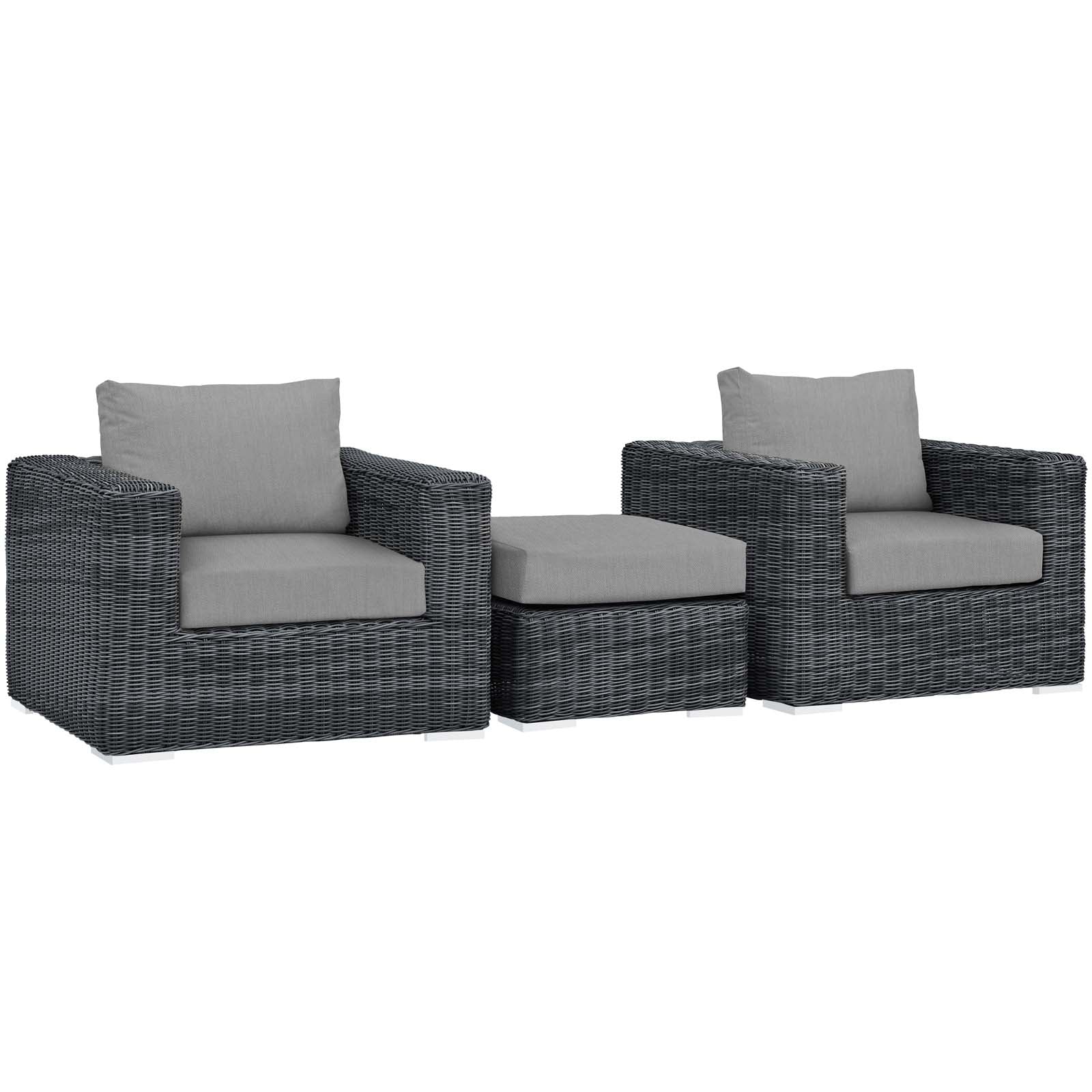 Summon 3 Piece Outdoor Patio Sunbrella® Sectional Set Canvas Gray EEI-1905-GRY-GRY-SET