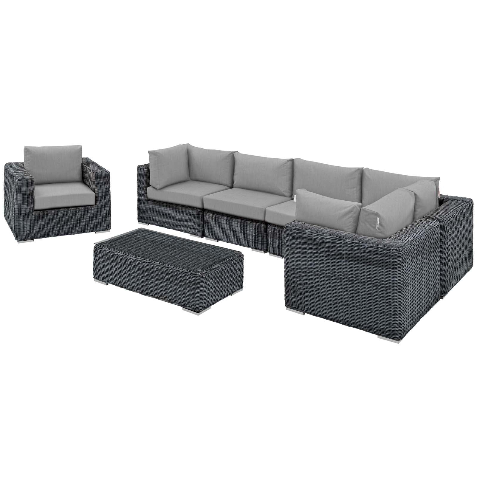 Summon 7 Piece Outdoor Patio Sunbrella® Sectional Set Canvas Gray EEI-1892-GRY-GRY-SET