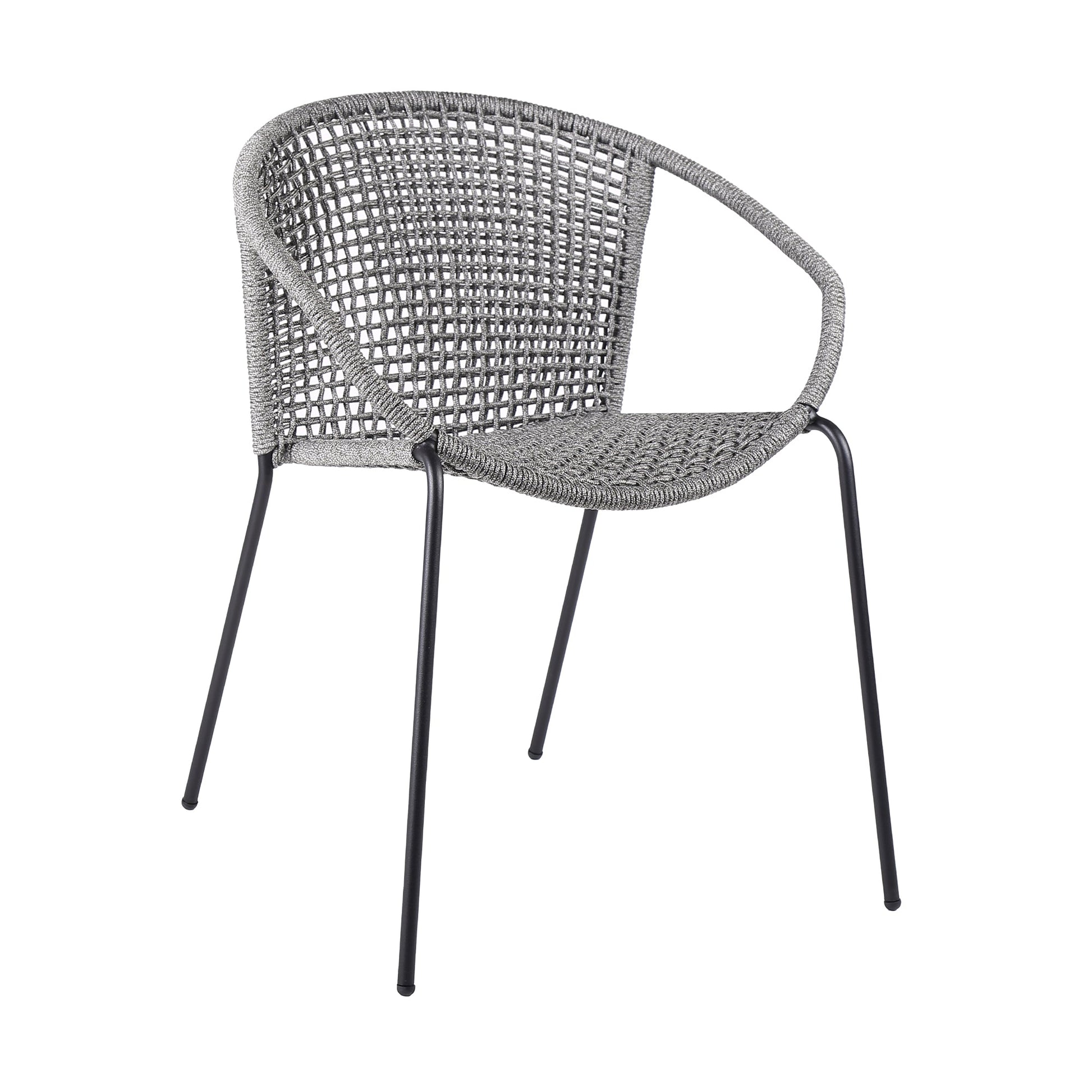 The Sydney and Snack 3 Piece Outdoor Patio Dining Set from Armen Living is a perfect addition to any outdoor space! The mixed materials work well together and create a fun and cohesive dining set for your front porch, back yard, pool side space, or patio. Constructed from eucalyptus wood and a gray super stone top, the 36-inch round dining table is a modern addition that easily fits into any space. This patio dining table features sleek tapered wood legs that allow for ample leg room. One of the best reasons to choose Eucalyptus wood for your outdoor furniture or four-seasons porch is that it is exceptionally resistant to decay and rot. It naturally resists the influence of moisture because of the high oil content it naturally contains. That means it can get damp without you worrying about whether damage will occur. It can withstand several different outdoor elements while lasting for many years if it receives proper care. Defined by functional simplicity and timeless beauty, the dining table delivers a harmony of natural textures to complement any outdoor space. The stone top features a 5-layer composite with 2 layers of cement fiberboard surrounding the aluminum honeycomb core. This beautiful tabletop is durable and robust - capable of withstanding inclement weather and everyday wear and tear. Featuring an elaborate woven design and durable metal frame, the snack dining chairs will blend seamlessly into your outdoor decor. The wide seat and back offer ample room for seating - creating a divine seating experience. These outdoor chairs feature a weather-resistant regatta cording tightly crosshatches the entire seat and back, providing supportive comfort so you enjoy time around the table with loved ones - also enhancing your seating experience with a softness that rivals most fabrics. Each chair is made with the best craftsmanship, with these chairs standing on top of durable metal legs in a black finish for a modern look. The Sydney and Snack 3 Piece outdoor dining set is available with a black eucalyptus finish on the table with a gray stone top, the snack chairs feature modern black metal legs and are available in your choice of gray, black, wasabi, or brick red rope.