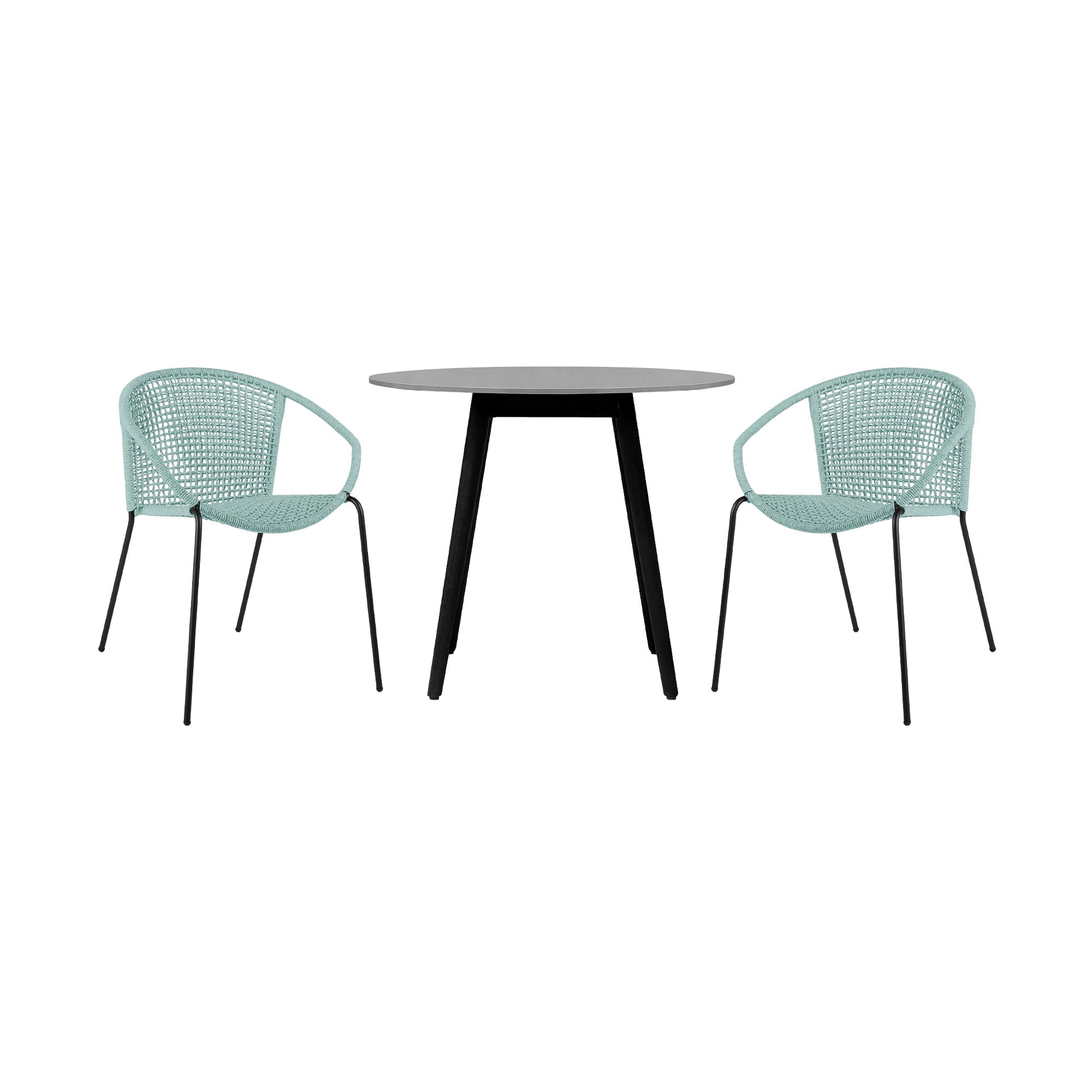 The Sydney and Snack 3 Piece Outdoor Patio Dining Set from Armen Living is a perfect addition to any outdoor space! The mixed materials work well together and create a fun and cohesive dining set for your front porch, back yard, pool side space, or patio. Constructed from eucalyptus wood and a gray super stone top, the 36-inch round dining table is a modern addition that easily fits into any space. This patio dining table features sleek tapered wood legs that allow for ample leg room. One of the best reasons to choose Eucalyptus wood for your outdoor furniture or four-seasons porch is that it is exceptionally resistant to decay and rot. It naturally resists the influence of moisture because of the high oil content it naturally contains. That means it can get damp without you worrying about whether damage will occur. It can withstand several different outdoor elements while lasting for many years if it receives proper care. Defined by functional simplicity and timeless beauty, the dining table delivers a harmony of natural textures to complement any outdoor space. The stone top features a 5-layer composite with 2 layers of cement fiberboard surrounding the aluminum honeycomb core. This beautiful tabletop is durable and robust - capable of withstanding inclement weather and everyday wear and tear. Featuring an elaborate woven design and durable metal frame, the snack dining chairs will blend seamlessly into your outdoor decor. The wide seat and back offer ample room for seating - creating a divine seating experience. These outdoor chairs feature a weather-resistant regatta cording tightly crosshatches the entire seat and back, providing supportive comfort so you enjoy time around the table with loved ones - also enhancing your seating experience with a softness that rivals most fabrics. Each chair is made with the best craftsmanship, with these chairs standing on top of durable metal legs in a black finish for a modern look. The Sydney and Snack 3 Piece outdoor dining set is available with a black eucalyptus finish on the table with a gray stone top, the snack chairs feature modern black metal legs and are available in your choice of gray, black, wasabi, or brick red rope.
