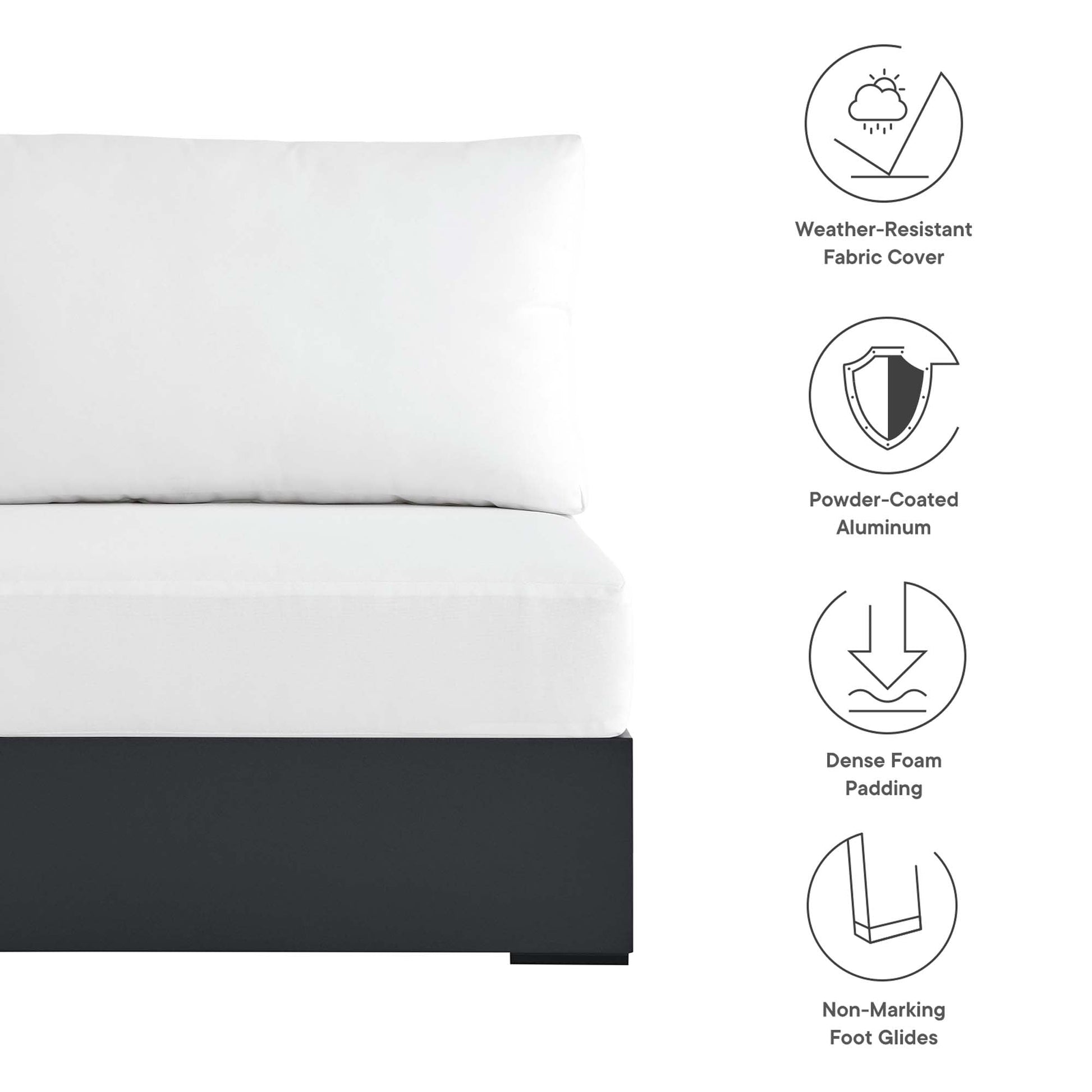Tahoe Outdoor Patio Powder-Coated Aluminum Modular Armless Chair by Modway EEI-6628-GRY-WHI