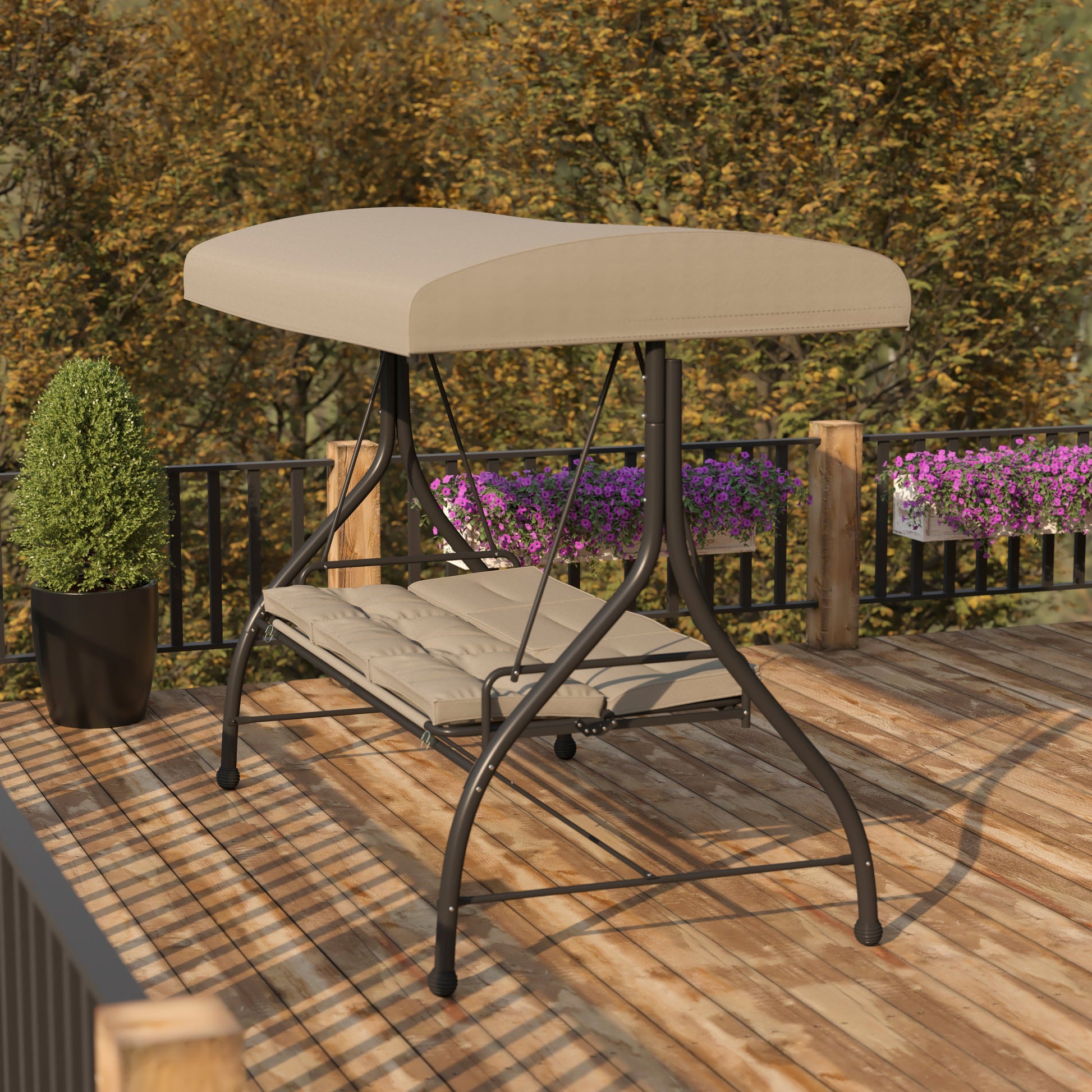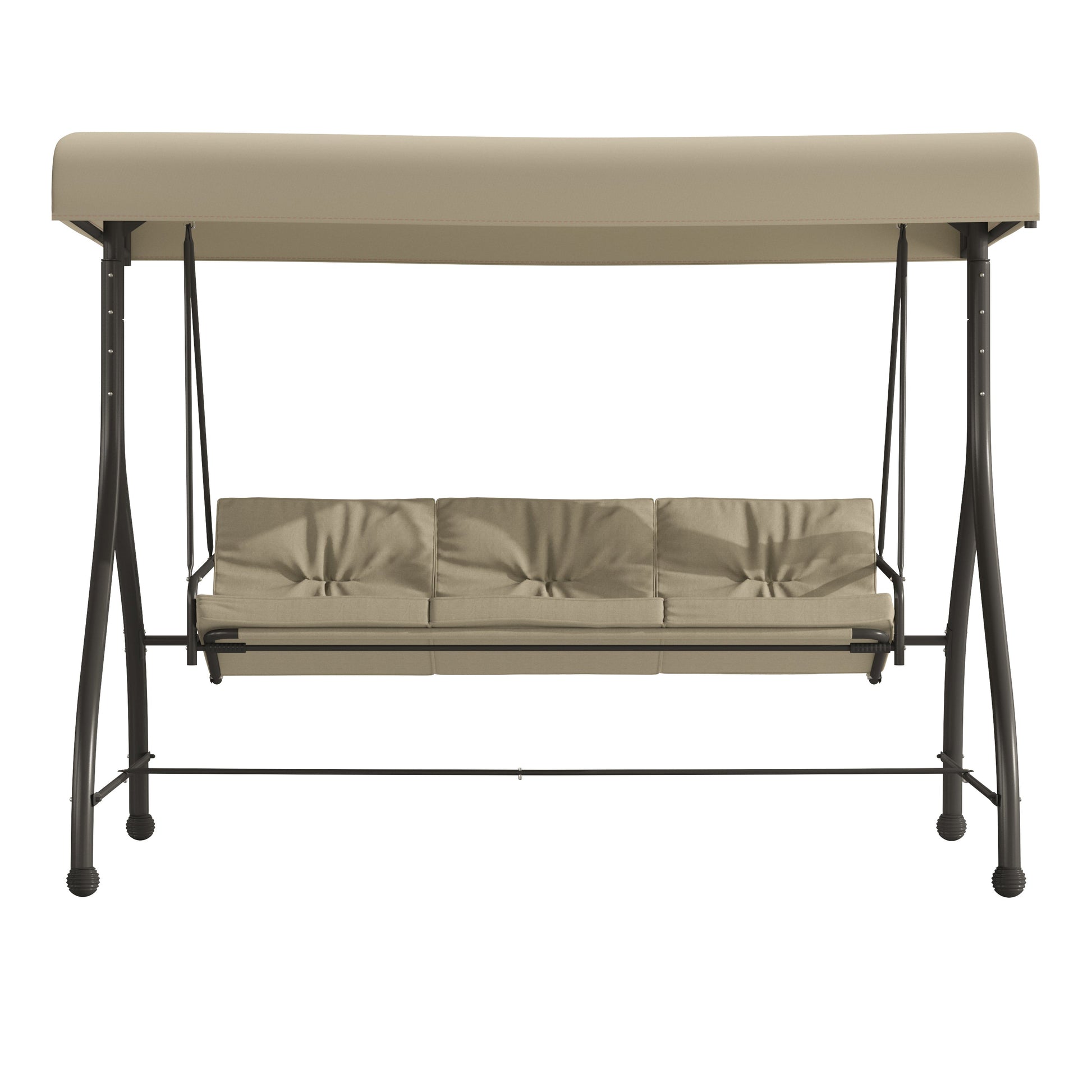 Tellis 3-Seat Outdoor Steel Converting Patio Swing Canopy Hammock with Cushions / Outdoor Swing Bed (Tan) Dimensions: 86"W x 48"D x 68"H