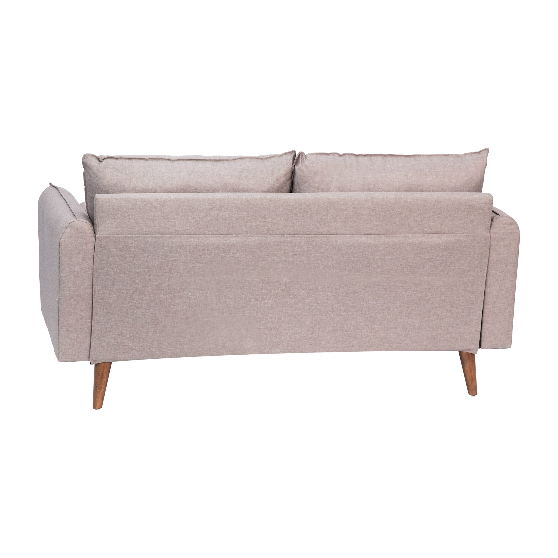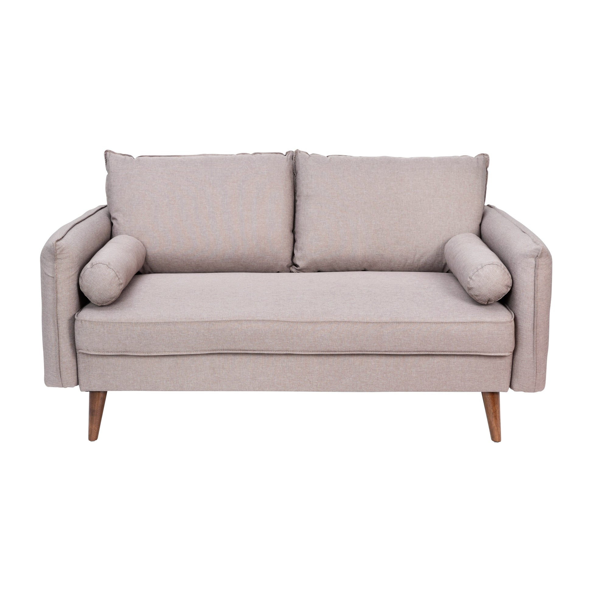 Evie Mid-Century Modern Loveseat Sofa with Faux Linen Fabric Upholstery & Solid Wood Legs in Taupe Dimensions: 60"W x 32.5"D x 27.25" - 31"H