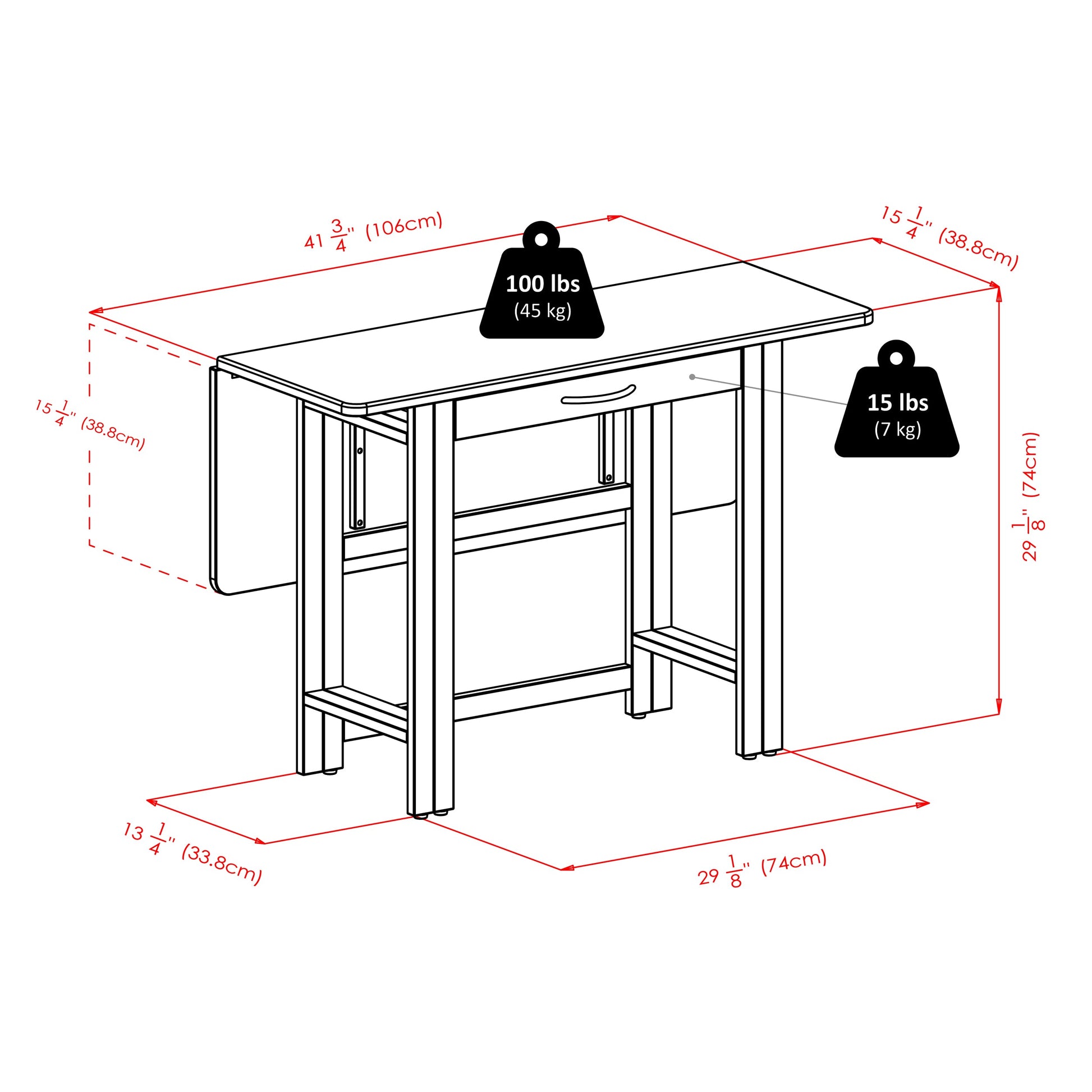 Top dimension (with leaf down) 41.7"W x 15.25"D
