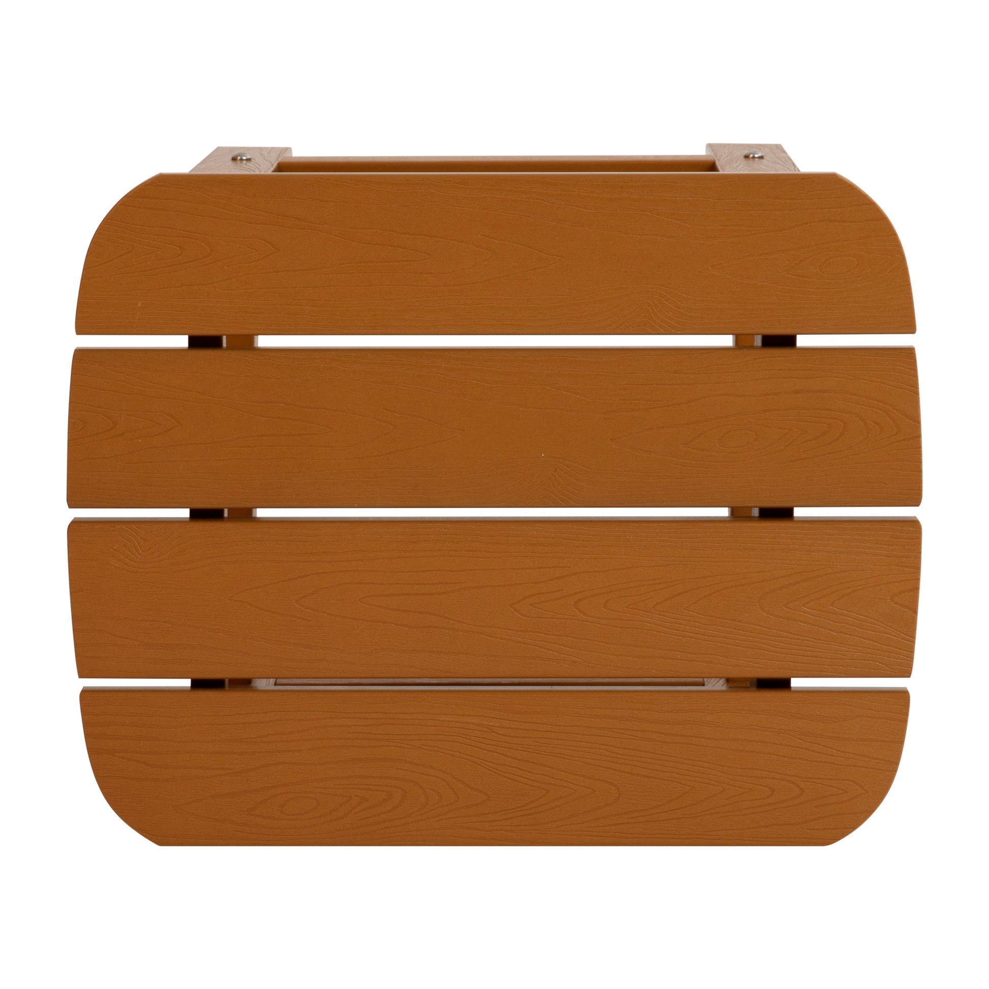 2 Pack Charlestown Commercial All-Weather Poly Resin Wood Adirondack Chairs with Side Table in Teak Dimensions: 29.5"W x 33.5"D x 35"H