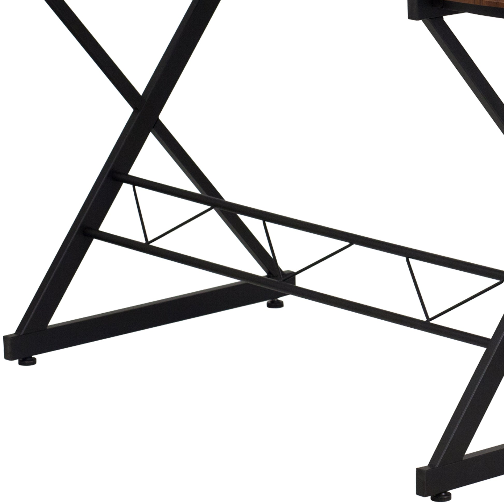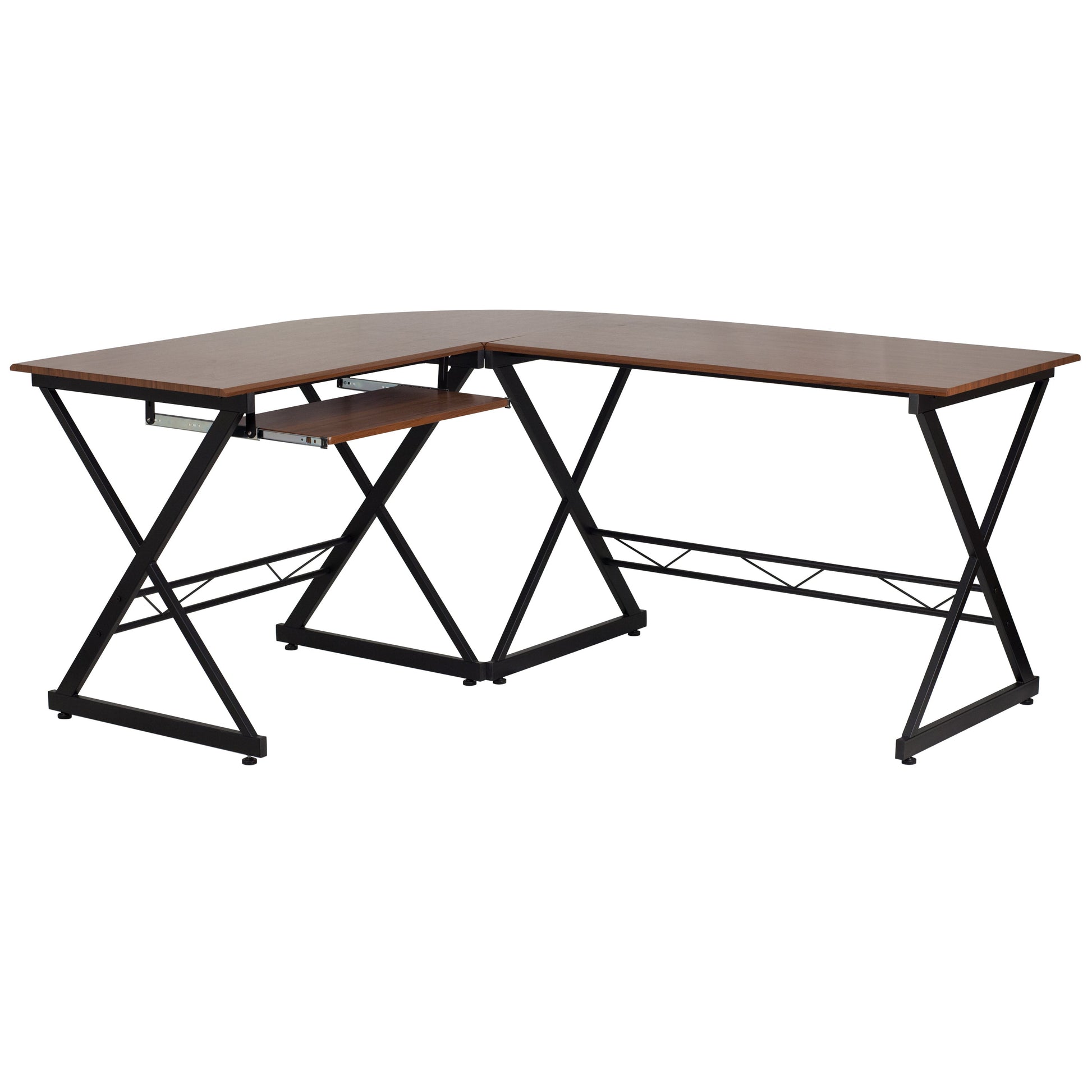 Singleton Teakwood Laminate L-Shape Computer Desk with Pull-Out Keyboard Tray Dimensions: 87"W x 50"D x 29.75"H
