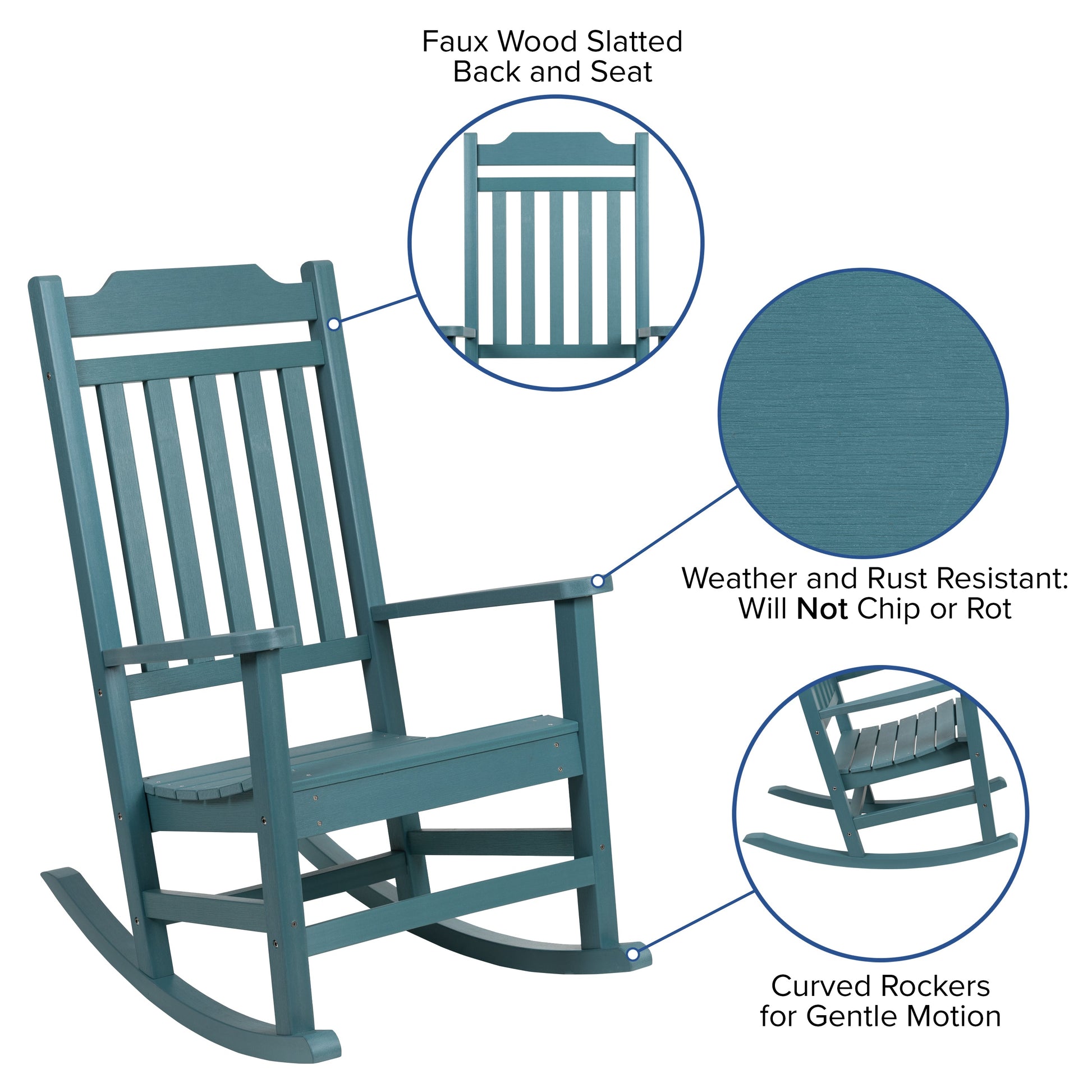 Winston All-Weather Poly Resin Rocking Chair in Teal Dimensions: 25.625"W x 35"D x 42"H