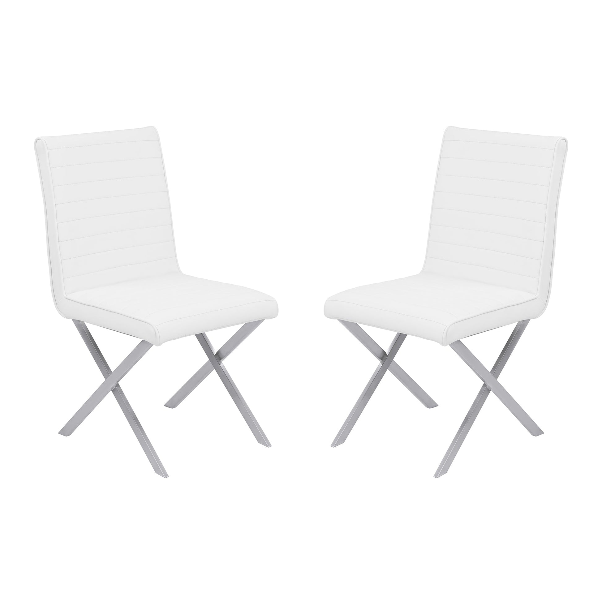 Tempe Contemporary Dining Chair in White Faux Leather with Brushed Stainless Steel Finish - Set of 2