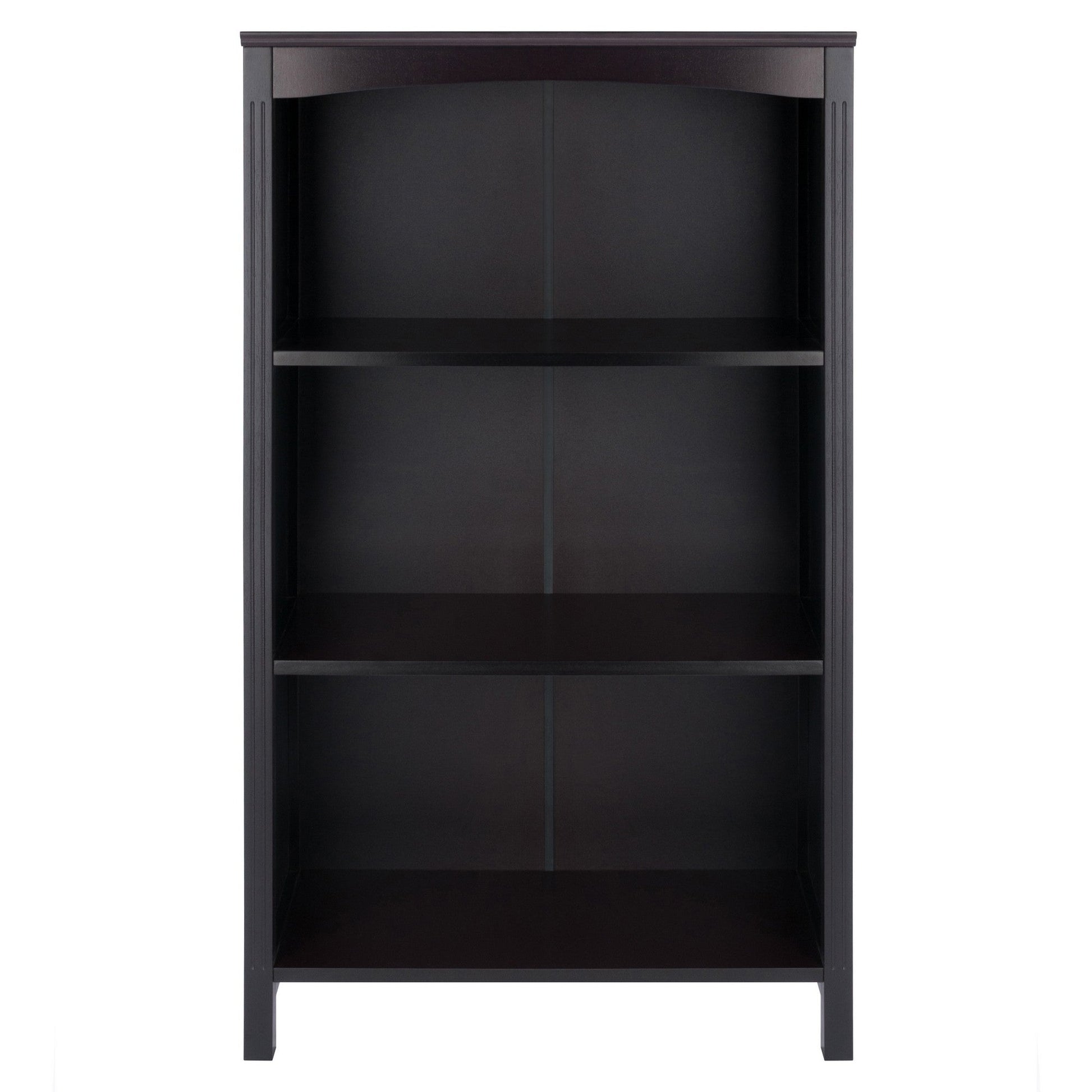 The Winsome Wood Terrace 3-Section Bookcase offers universal appeal as a storage and display shelf. Perfect piece to keep books organized or showing off collectibles, all while displaying a table lamp or favorite plant on the top. Constructed from combination of solid and composite wood in rich espresso finish. The gently curved apron and grooved front legs add an elegant touch to the simplicity of the design allowing it to mesh with most settings. Create more storage options with other units from the Winsome Terrace collection (each sold separately). Conveniently ships in 1 box that includes the hardware necessary for assembly.
