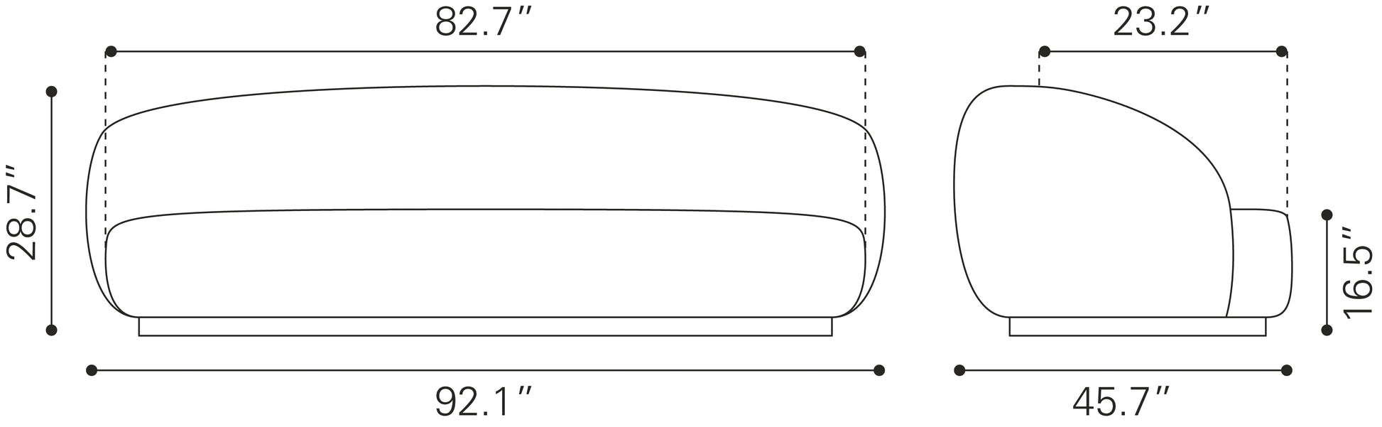This sofa has a polyester boucle style fabric that works great in any space, hospitality or residential. The shape and design are glam, modern, deco, and boho all at the same time.