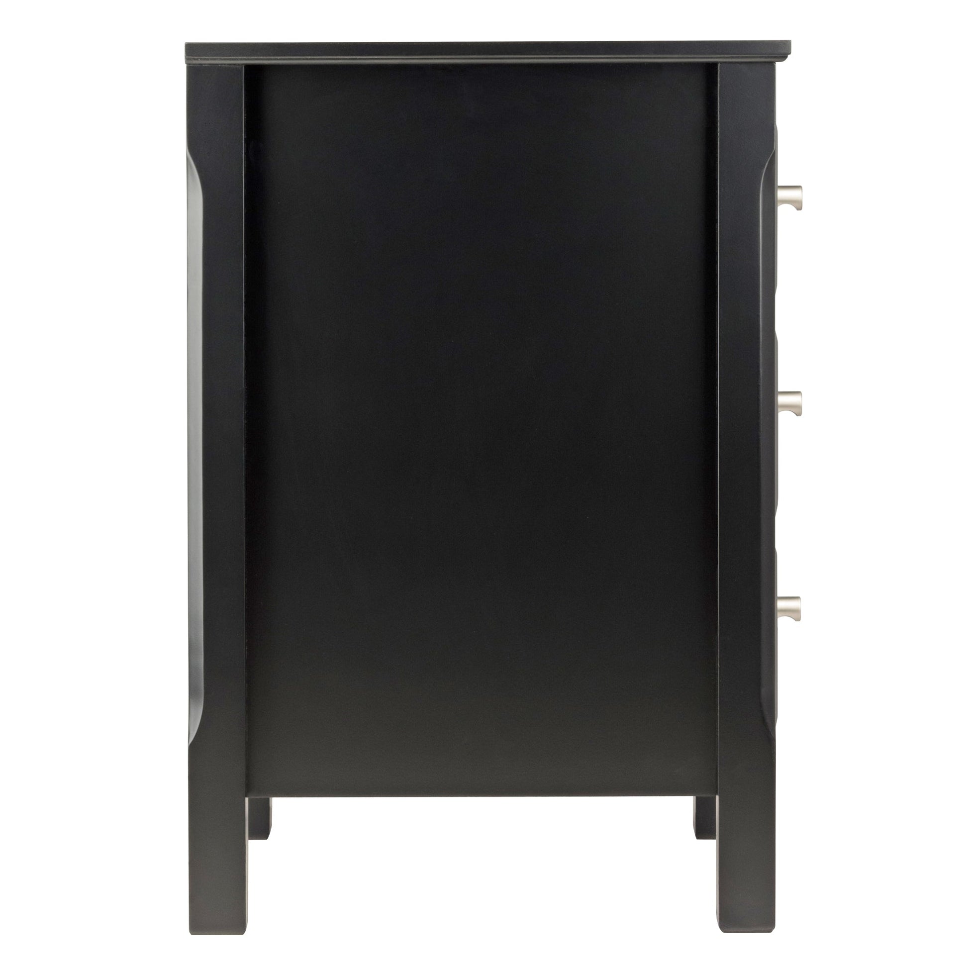 The Winsome Wood Timmy Nightstand makes an excellent bed side table. Featuring three drawers which conveniently store your night time essentials with an ample size top for your lamp. Or place next to your favorite couch in the living room or den to use as an accent table. This table is made from sturdy composited wood with a black finish that can easily mesh well with most home decor. Conveniently packed and shipped in 1 box, that includes the hardware necessary for assembling. Replacement parts can be requested directly to the manufacturer within 60 days from date of purchase.