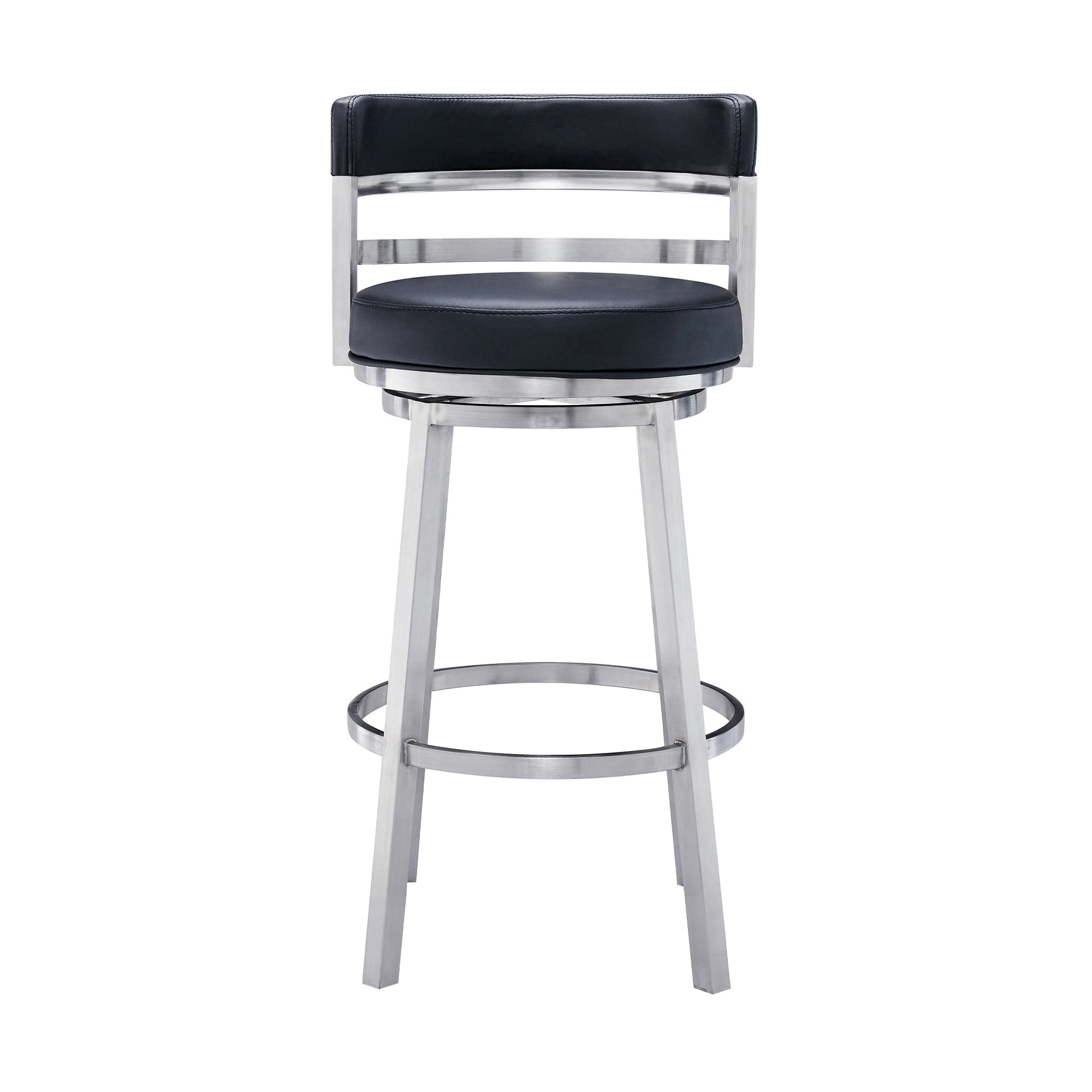 Titana 30" Bar Height Swivel Black Faux Leather and Brushed Stainless Steel Bar Stool