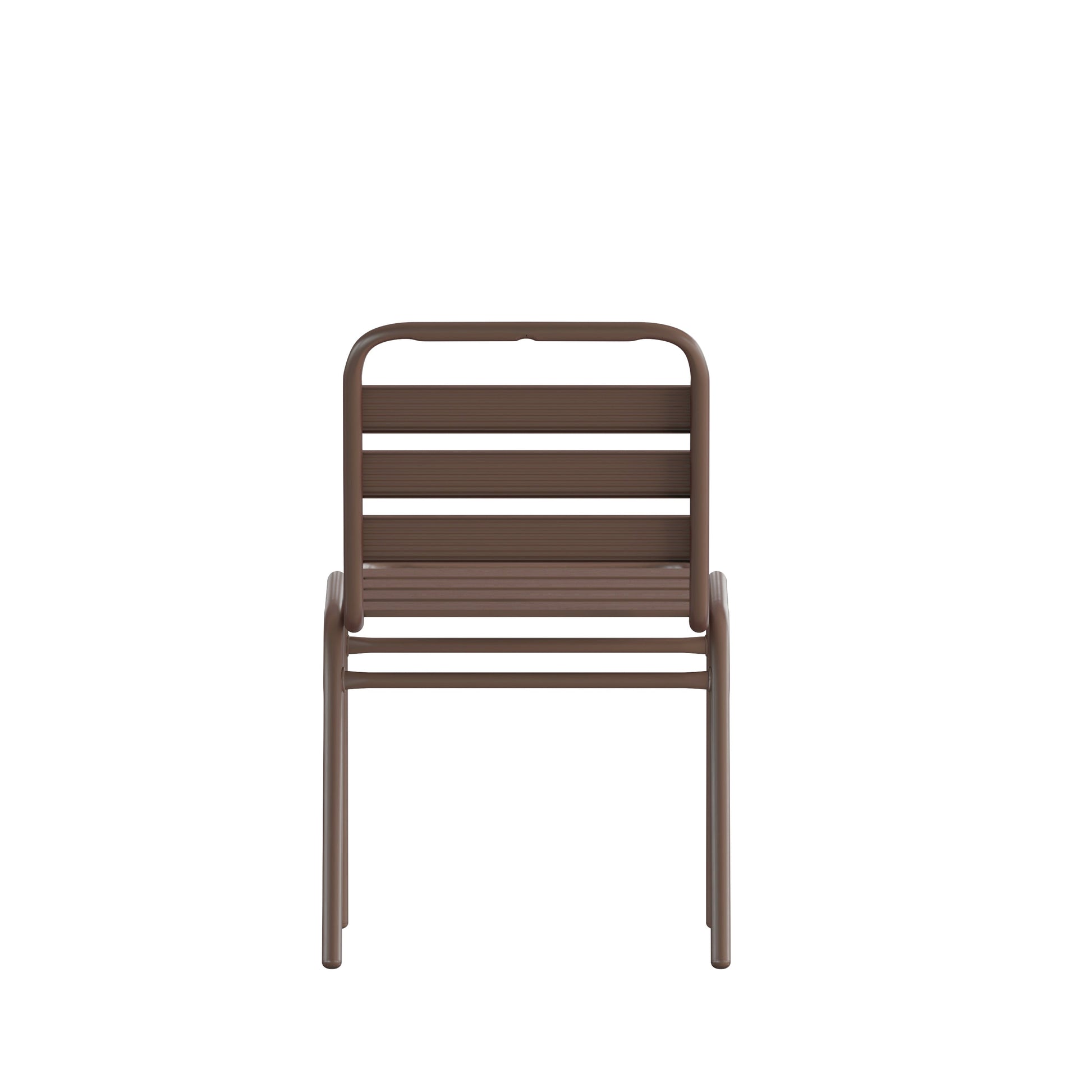 Savor your meals outdoors with family and friends on metal patio chairs.