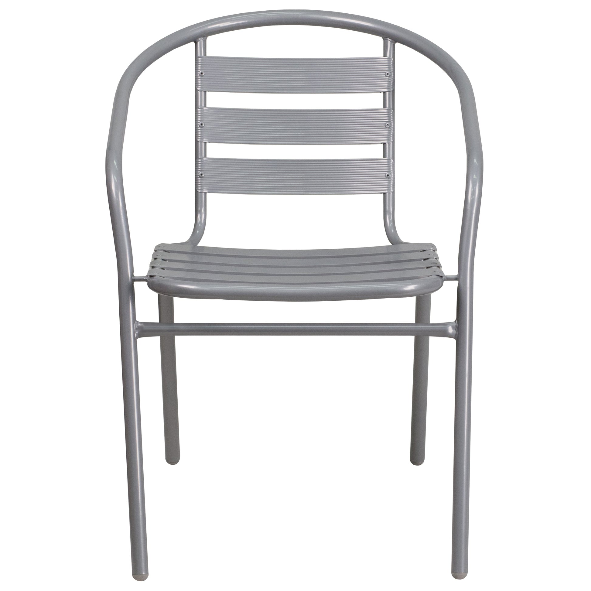 Savor your meals outdoors with family and friends on metal patio chairs.