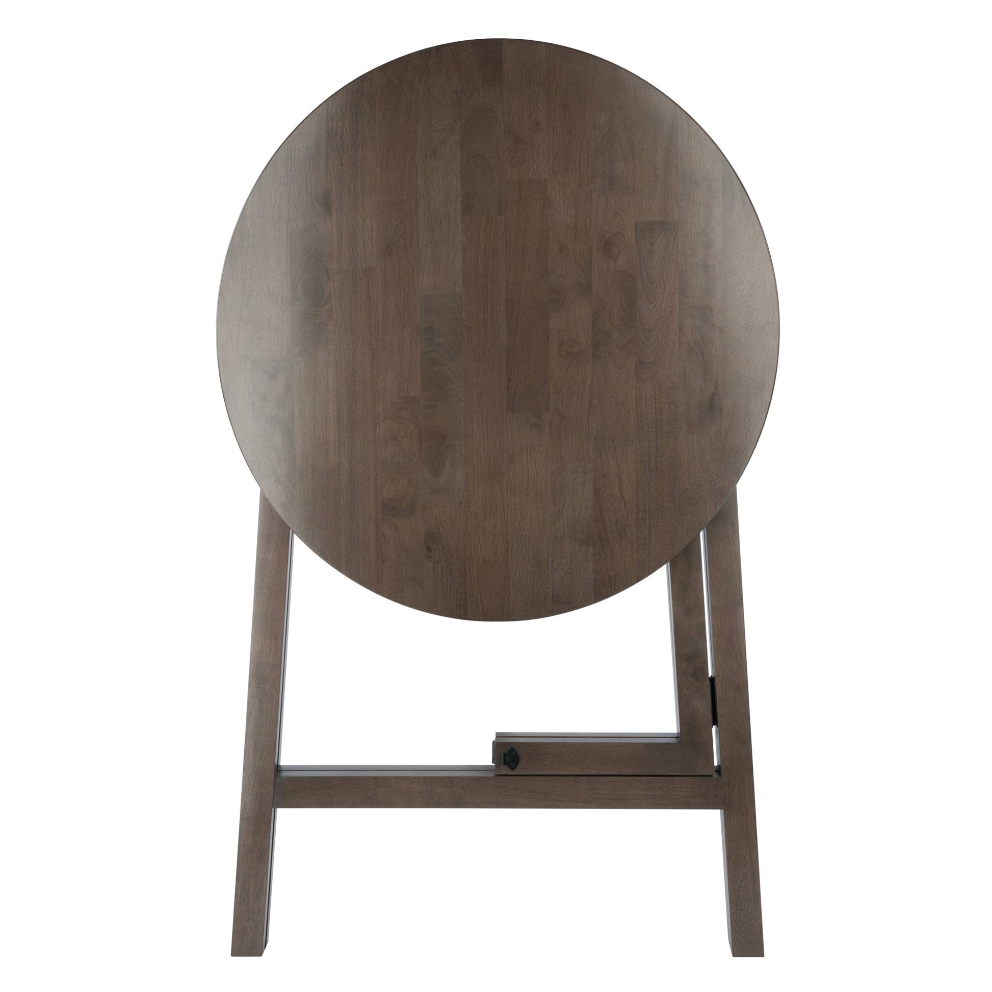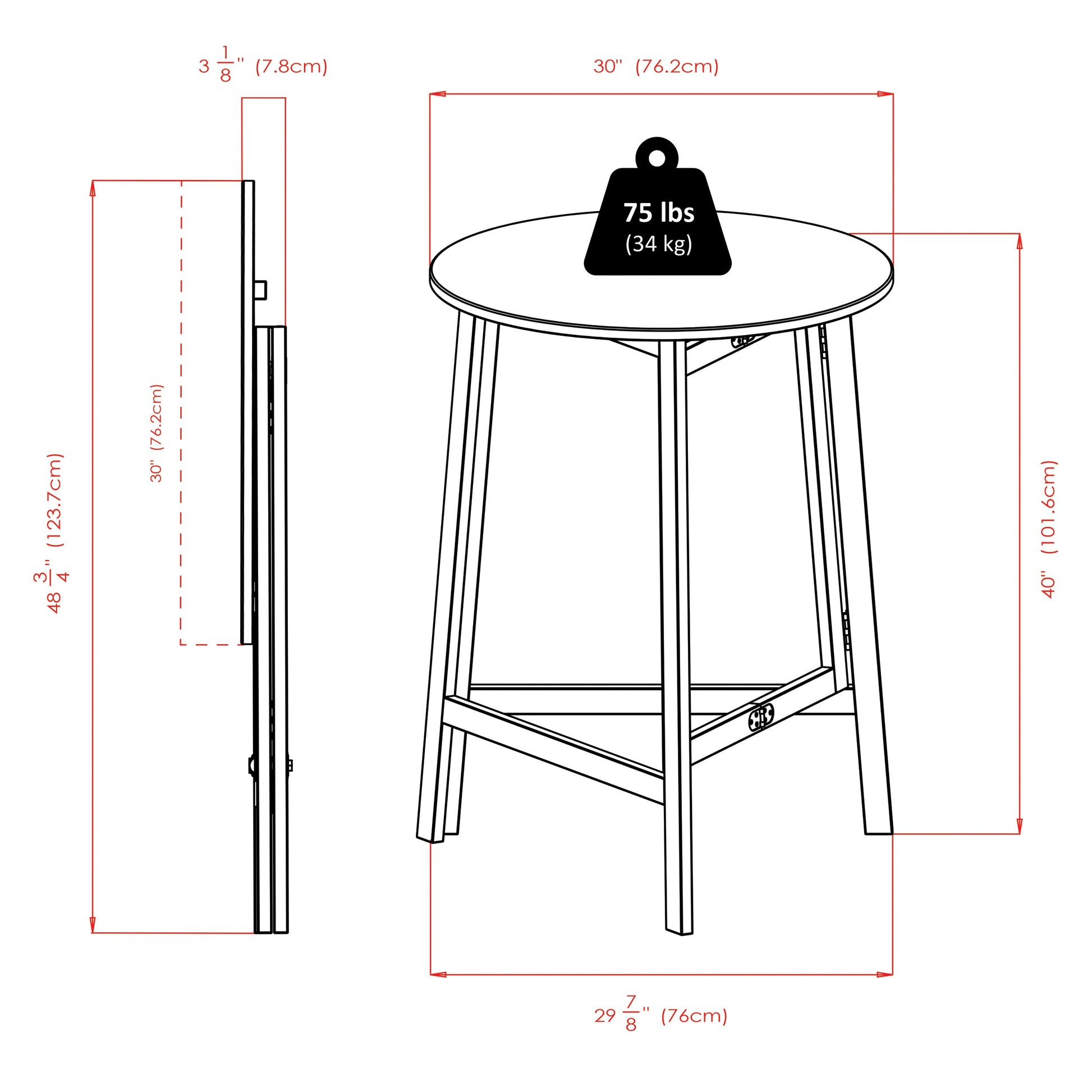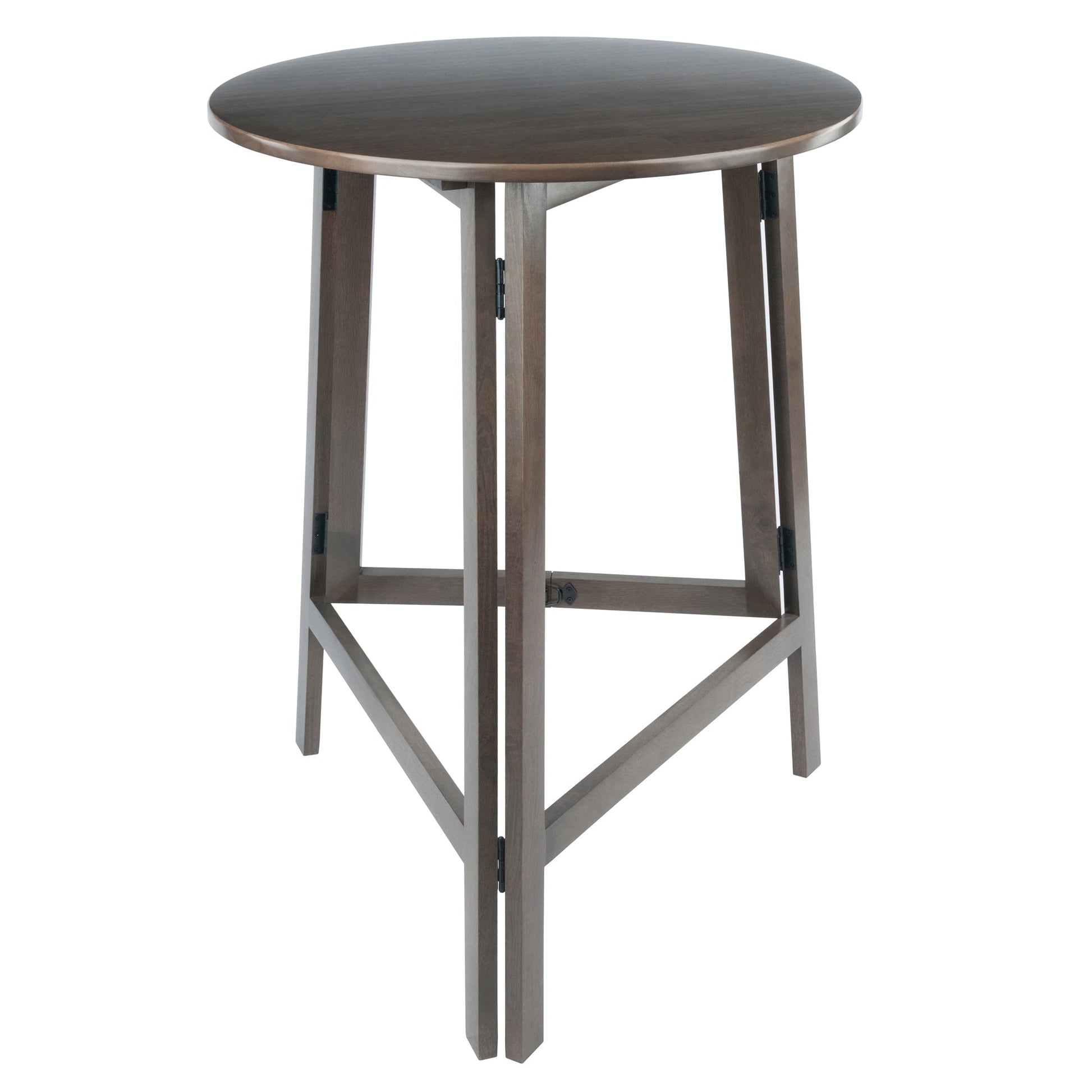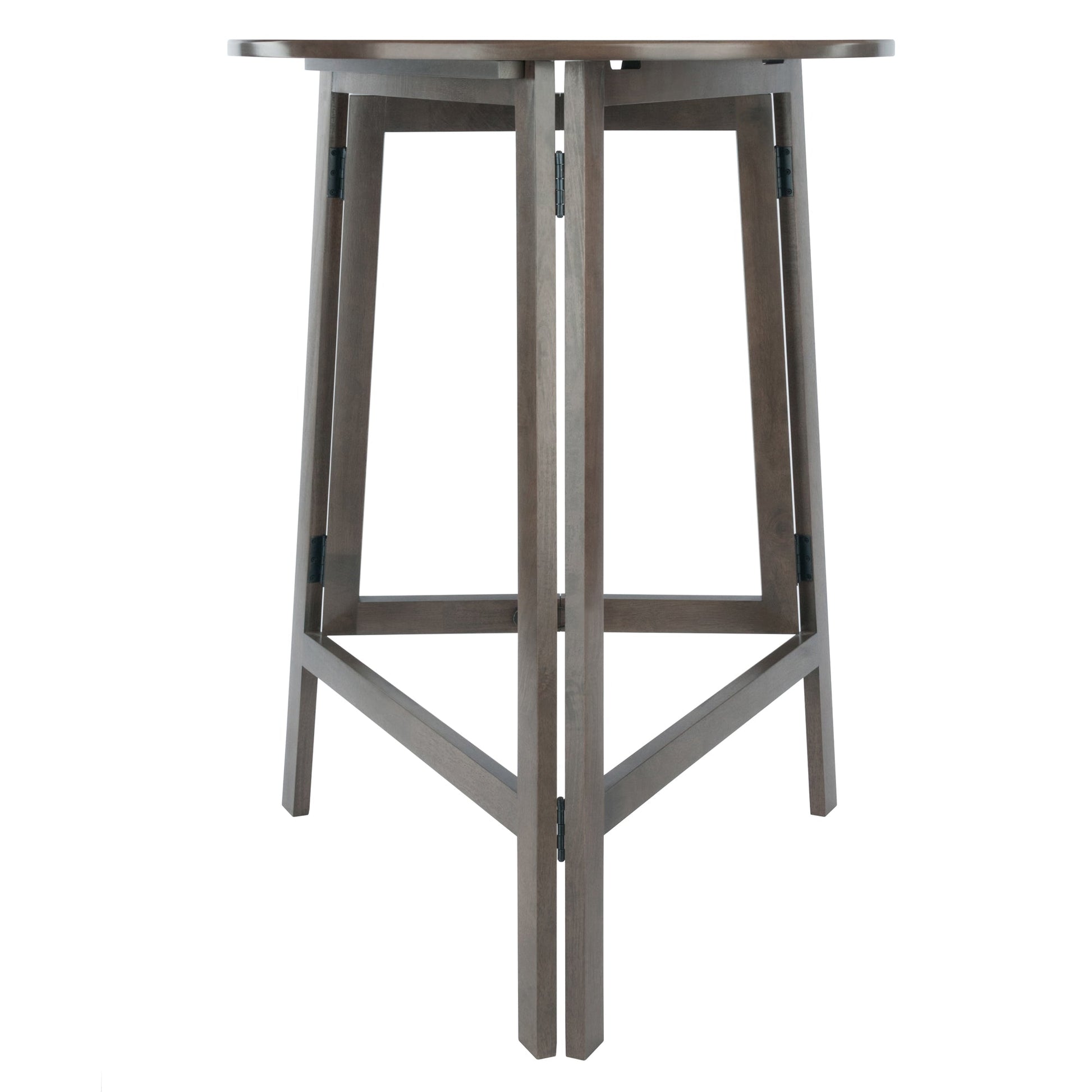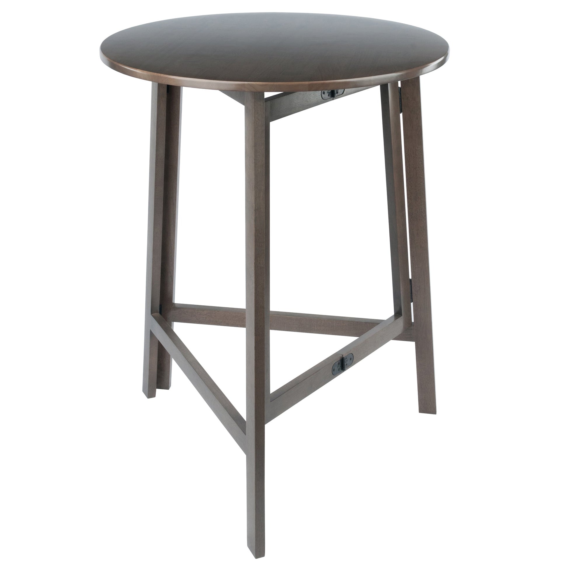 Instantly expand needed tabletop space with the Winsome Wood Torrence High Table, a uniquely designed folding round table. The frame unfolds in triangular fashion, offering a contemporary and polished look to a multi-functional table. When not in use, the table folds to a slim 3" deep, allowing storage almost anywhere. Making this a great addition to any home and ideal for a dorm or studio apartments with limited space. Crossbars connect all three legs to provide a sturdy base, and a metal catch locks the frame into place when opened. With a diameter of 30”, this table is constructed of sturdy solid wood in a lovely oyster gray finish offering ample space to have a meal or snacks. This one-of-a-kind table is perfect for your craft room, smaller dining spaces, and offer quick set up. Create your dining set by adding stools from one of the Winsome Wood collections in the same finish for a unified space (sold separately). Conveniently packed and shipped in 1 box, that includes the hardware necessary for assembling. Replacement part request can be submitted directly to the manufacturer within 60 days from date of purchase.